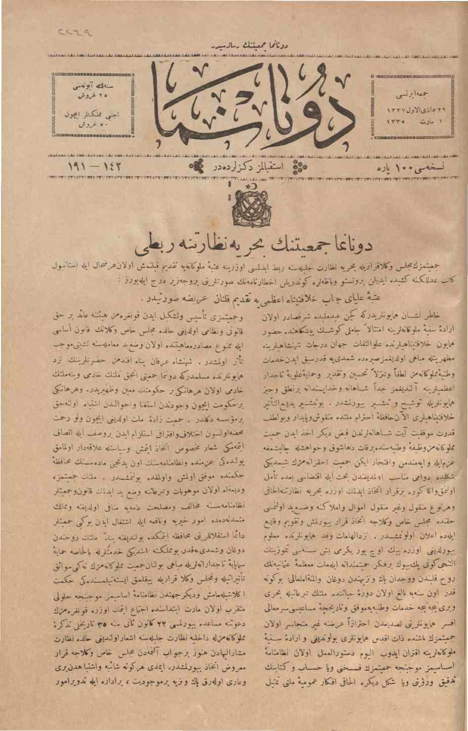 The name of the periodical was published under the following titles in different periods: Donanma: Donanma Cemiyetinin haftalık gazetesi; Donanma: istikbal denizlerdedir; Donanma: şimdilik ayda bir defa neşrolunur; Donanma: ayda bir defa neşr olunur, musavver, ahlaki, edebi, tarihi, fenni mecmuadır.