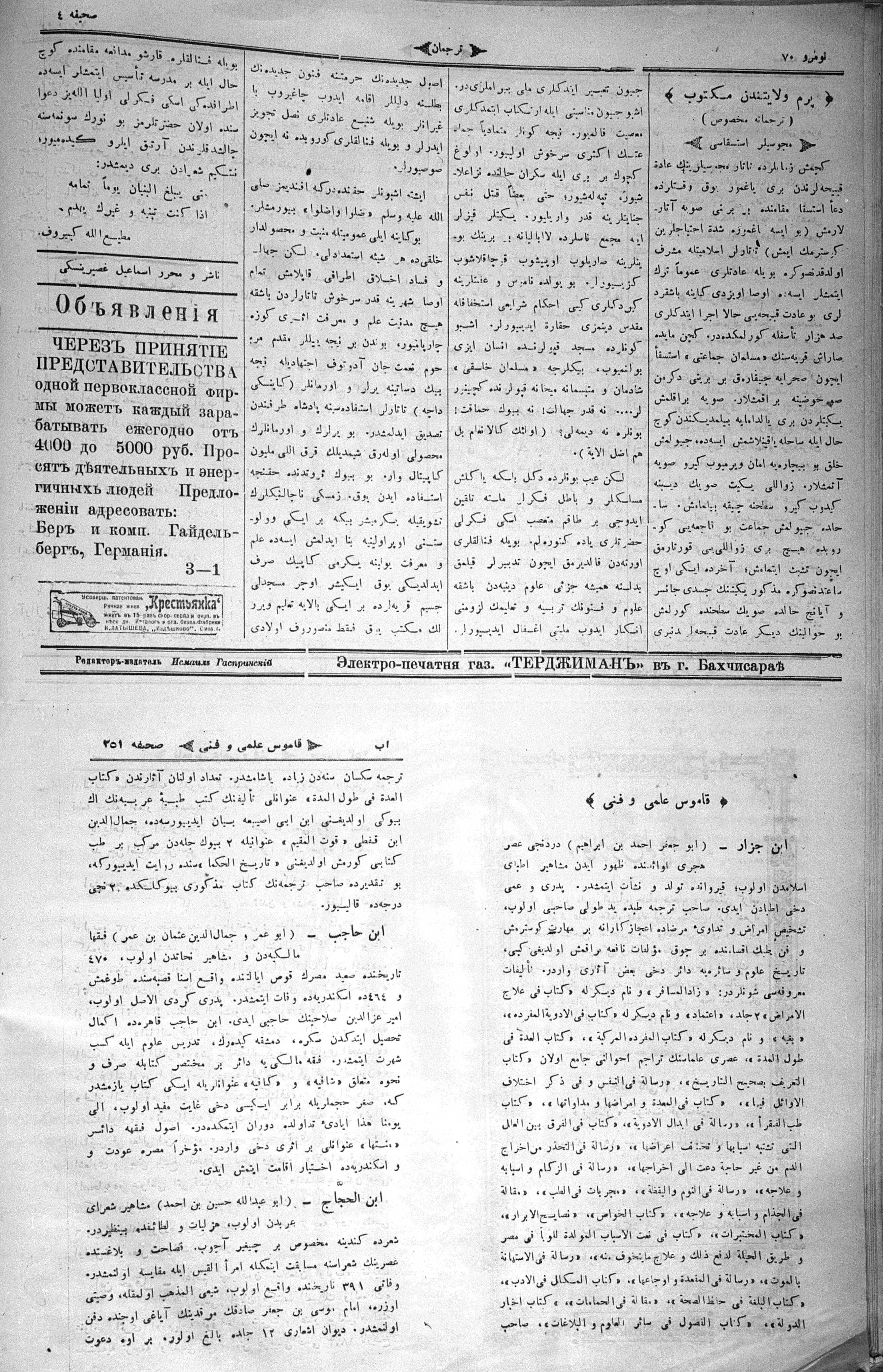Turkish-Russian newspaper published in Crimea by İsmail Gaspıralı.