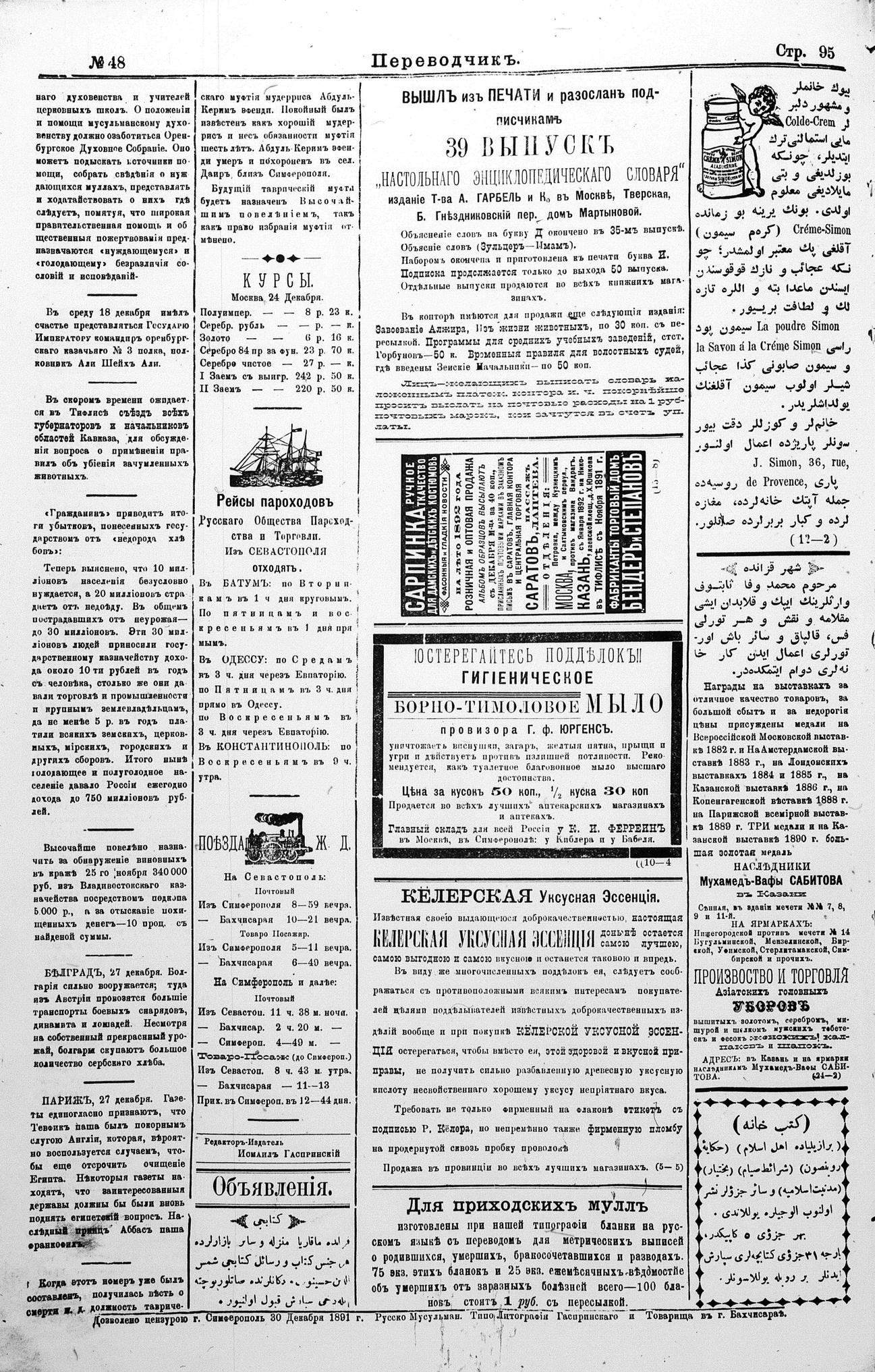 Tercüman, 31 December 1891 Year 9 No 48