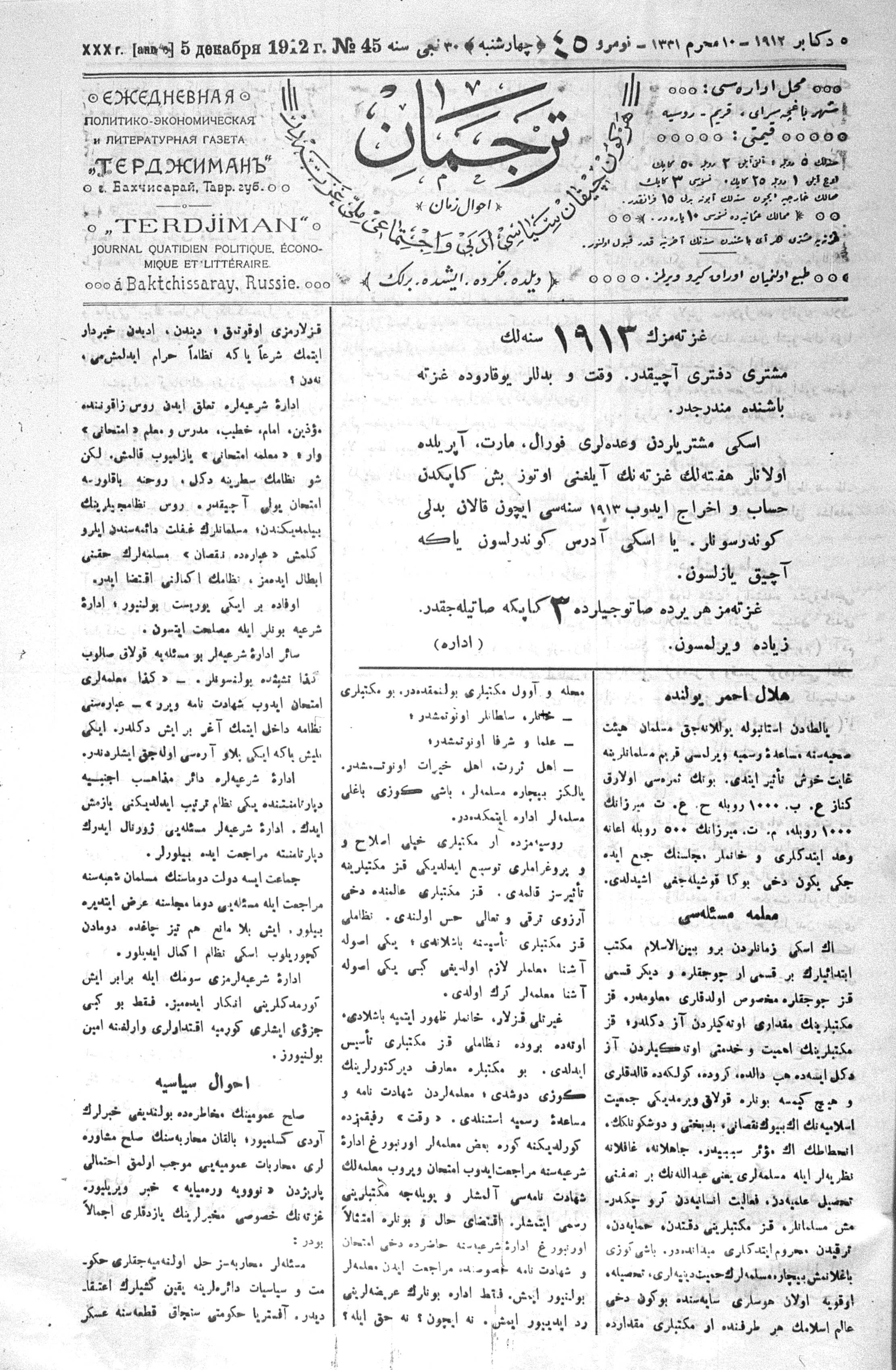 Tercüman, 05 December 1912 Year 30 No 45