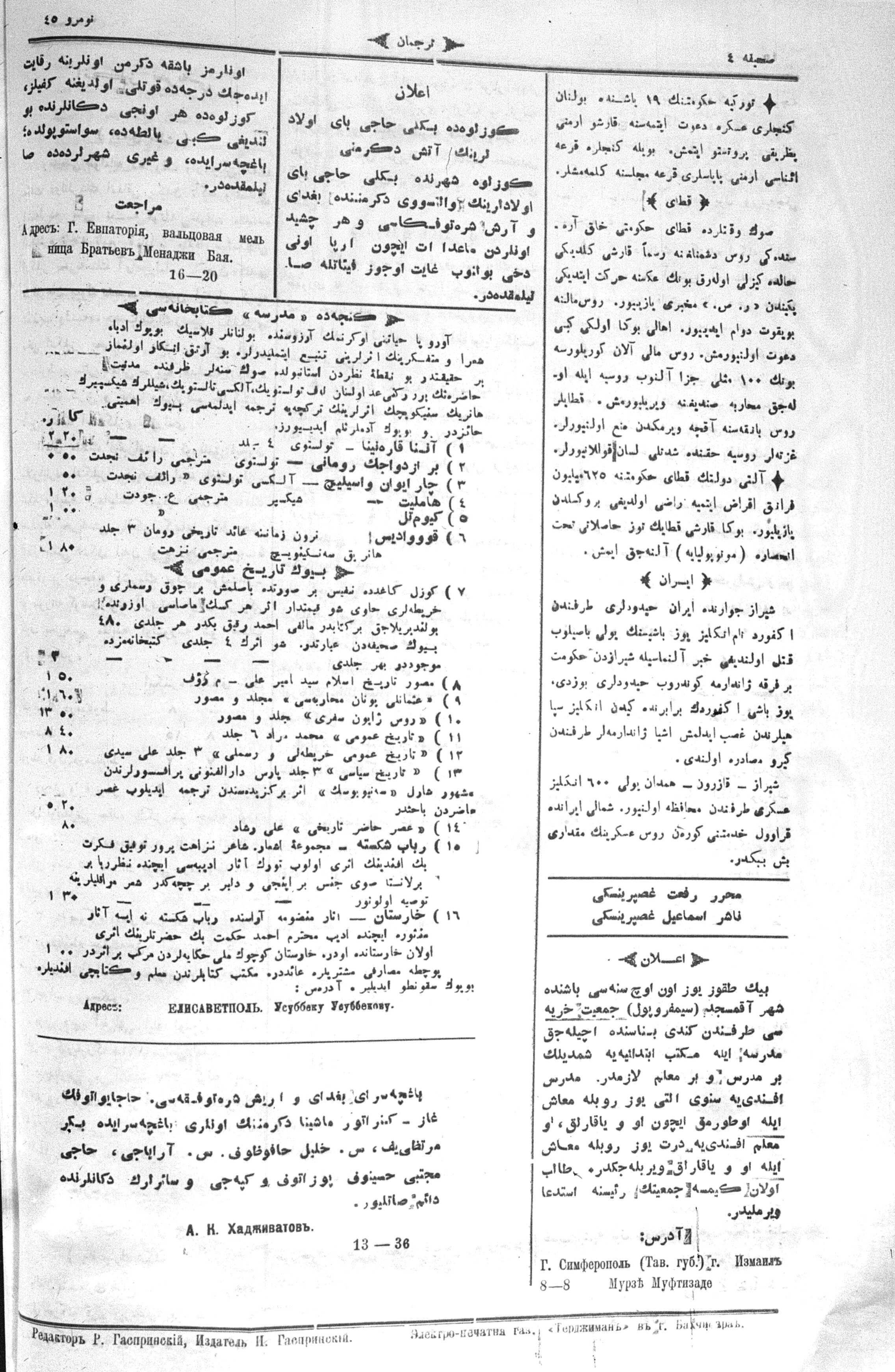 Turkish-Russian newspaper published in Crimea by İsmail Gaspıralı.