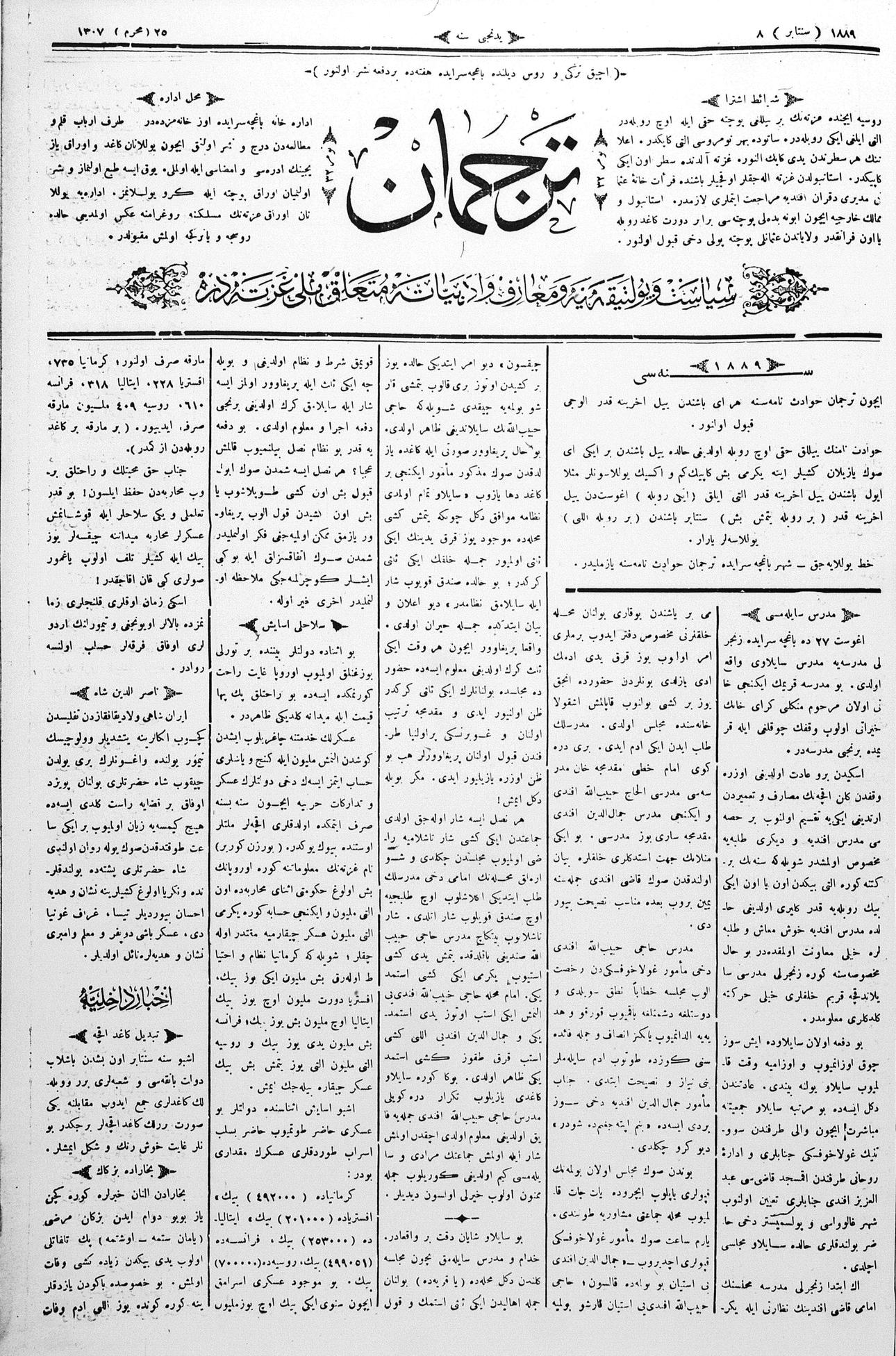 The name of the newspaper changed to Tercüman-ı Ahval-i Zaman in 1905. In 1909, it started to be published under its first name, Tercüman.