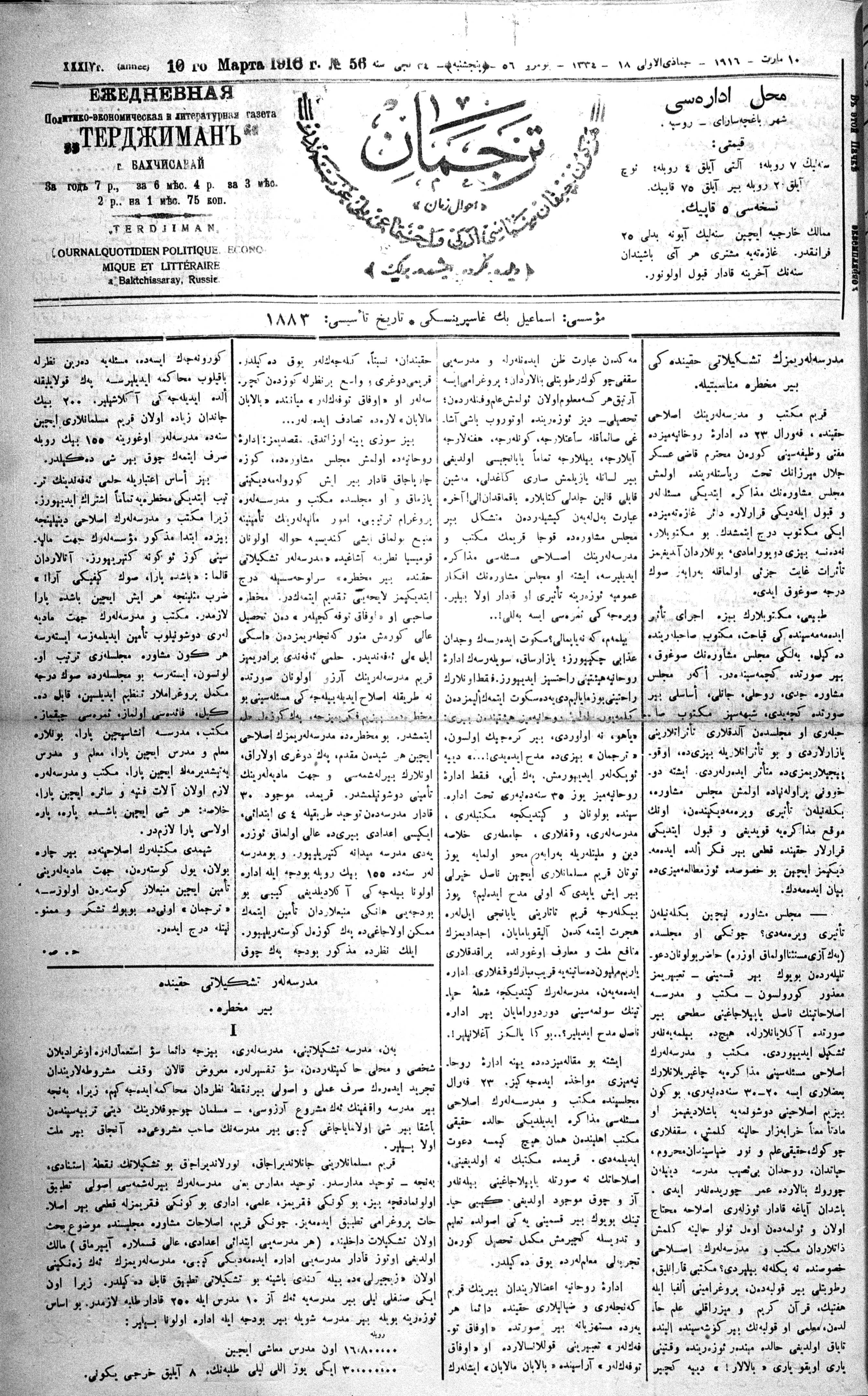 Tercüman, 10 March 1916 Year 34 No 56