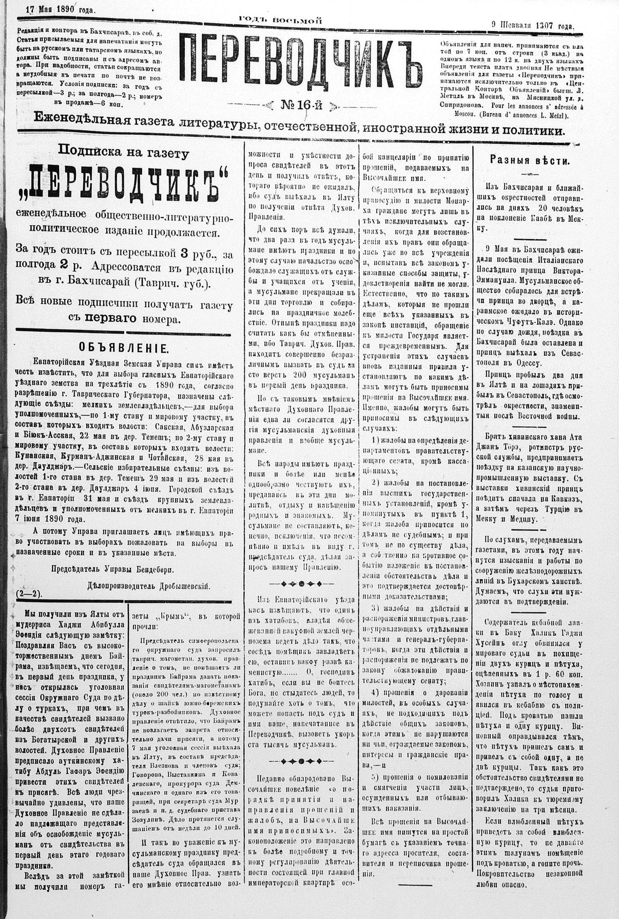 Turkish-Russian newspaper published in Crimea by İsmail Gaspıralı.