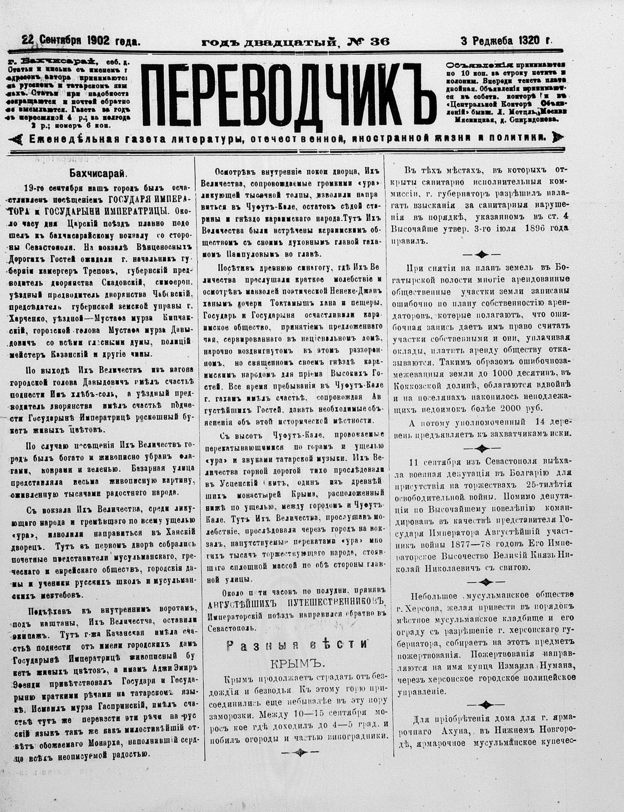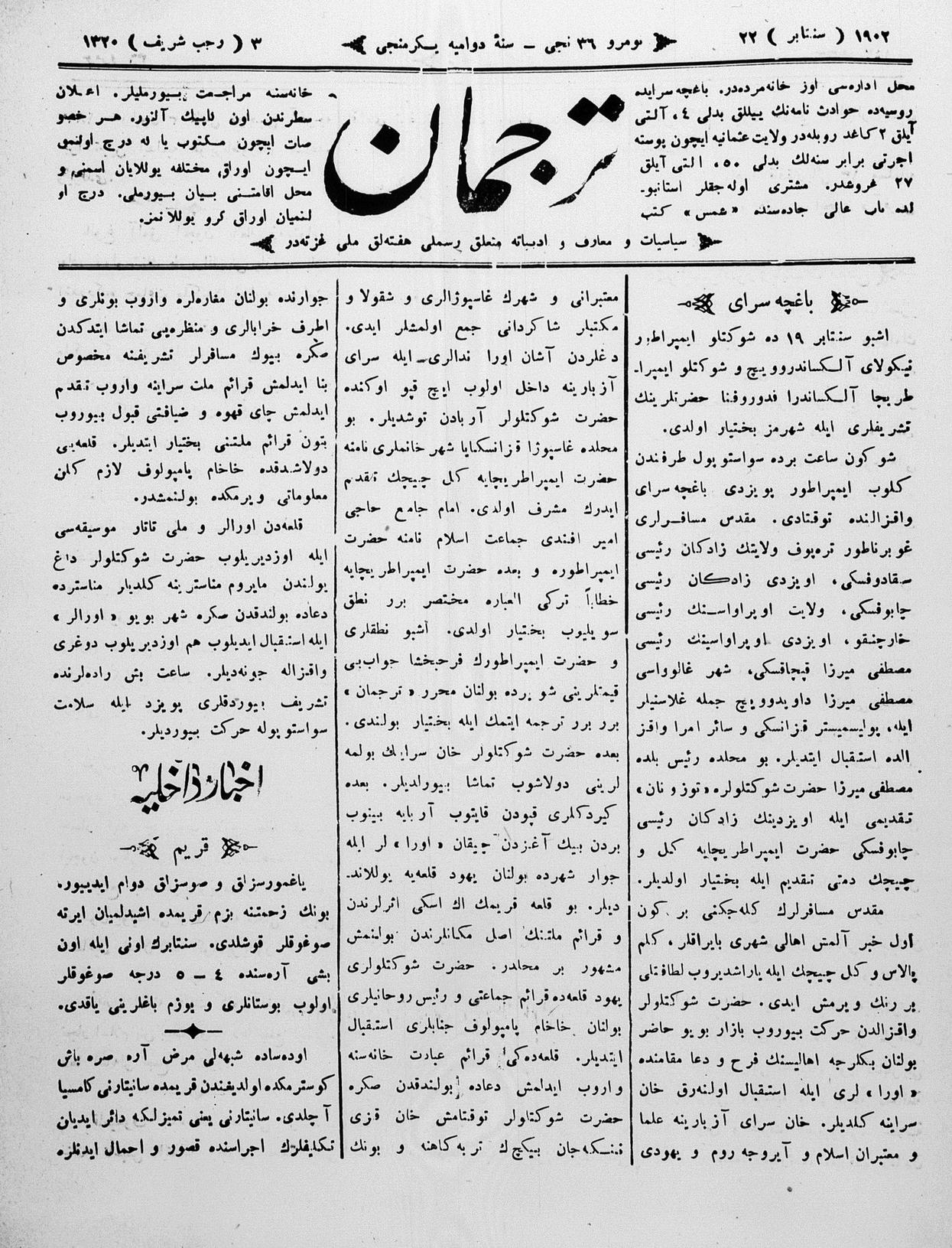 Tercüman, 22 September 1902 Year 20 No 36