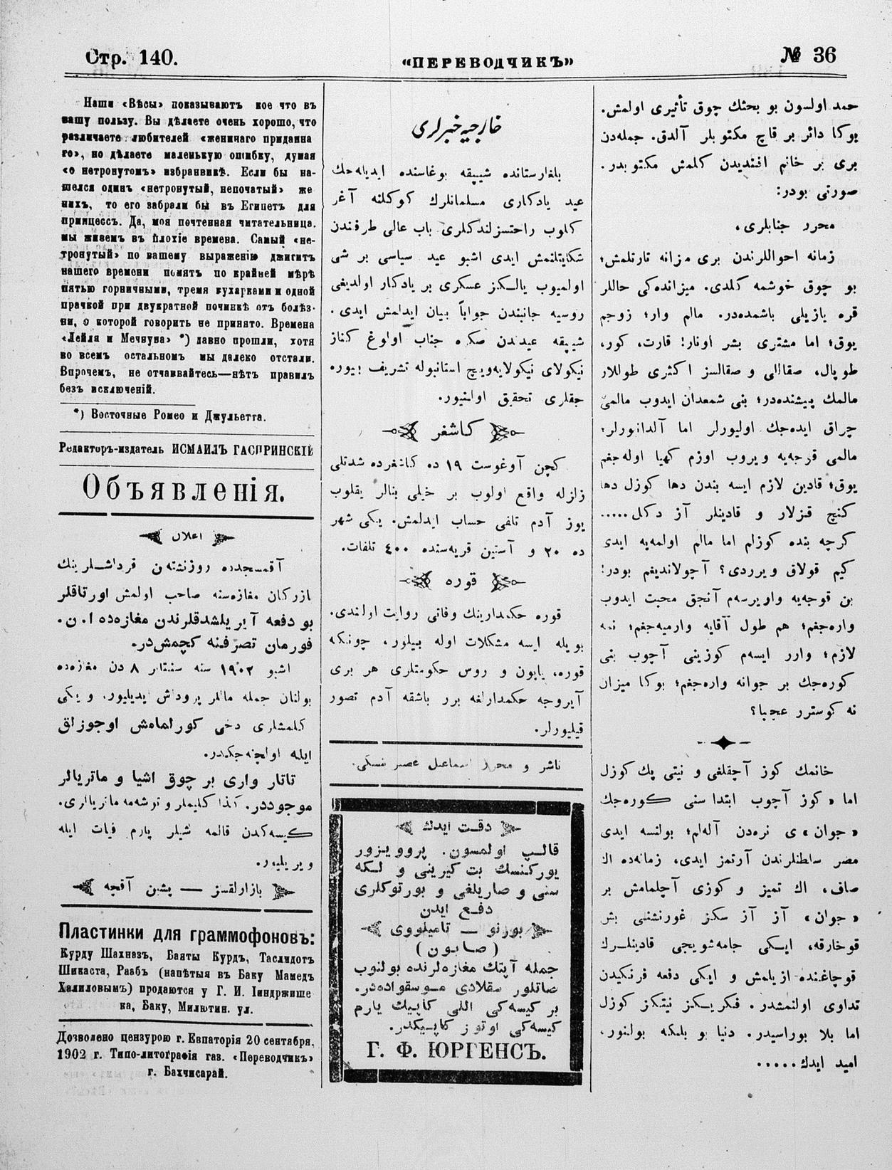Turkish-Russian newspaper published in Crimea by İsmail Gaspıralı.