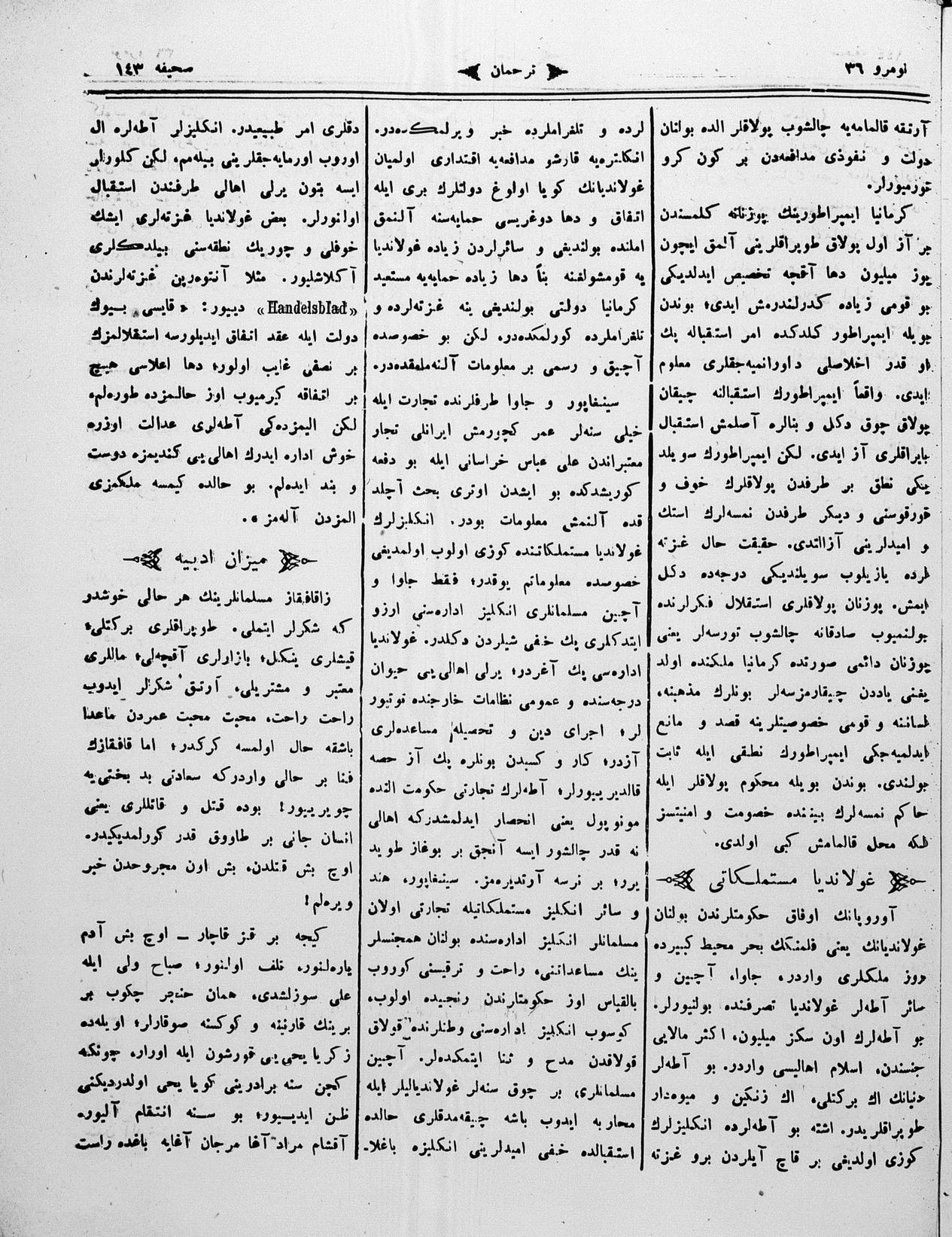 The name of the newspaper changed to Tercüman-ı Ahval-i Zaman in 1905. In 1909, it started to be published under its first name, Tercüman.