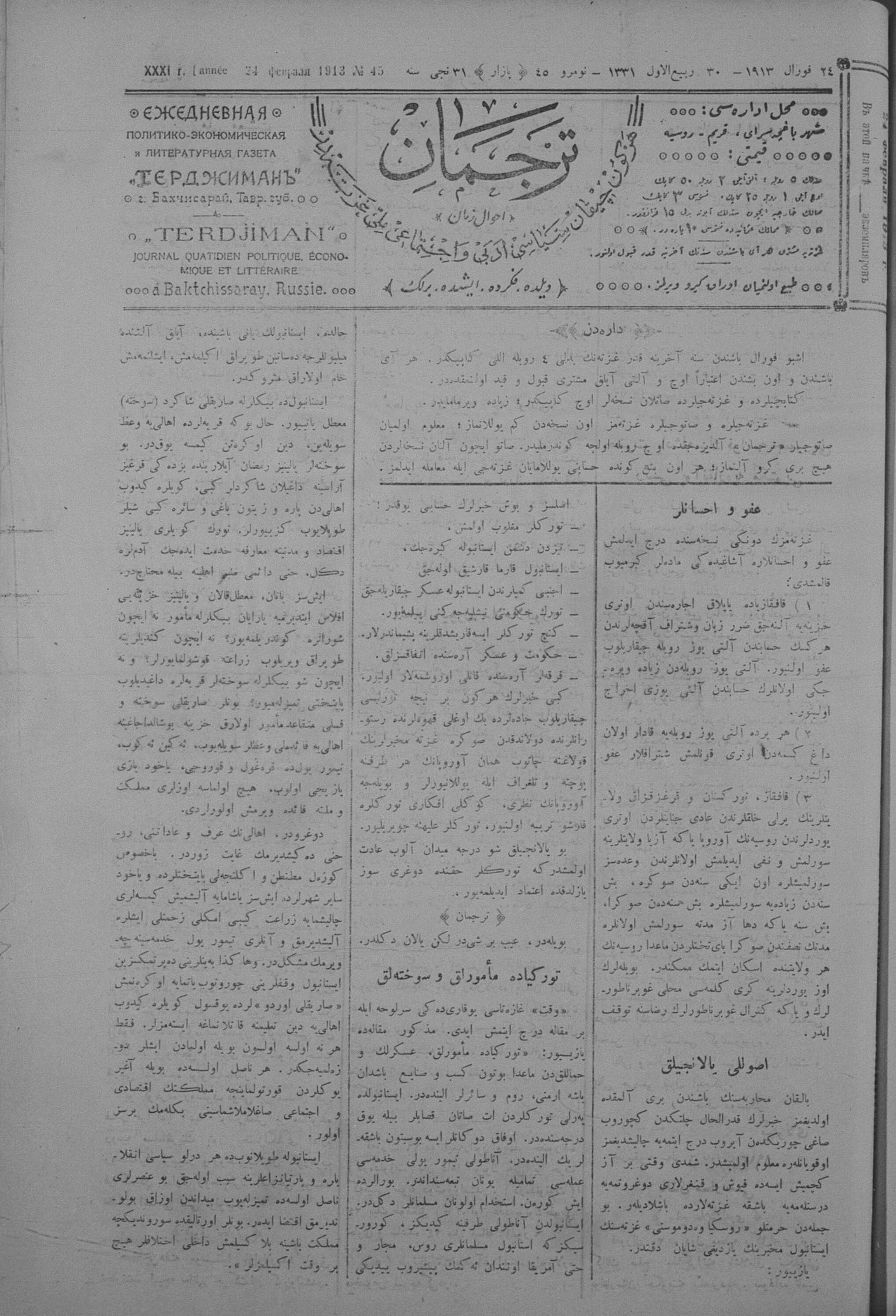 Tercüman, 24 February 1913 Year 31 No 45