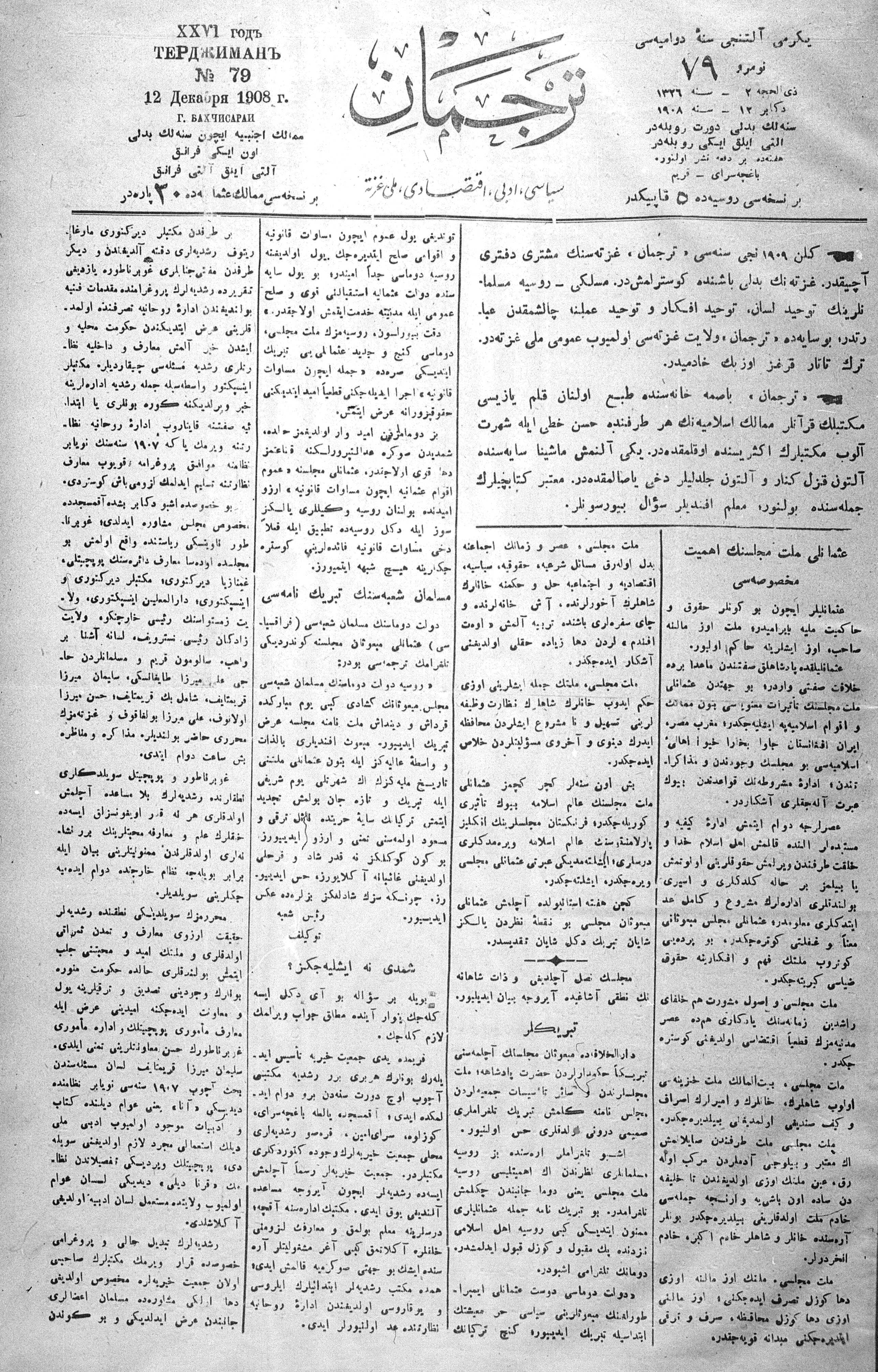 Tercüman, 12 December 1908 Year 26 No 79