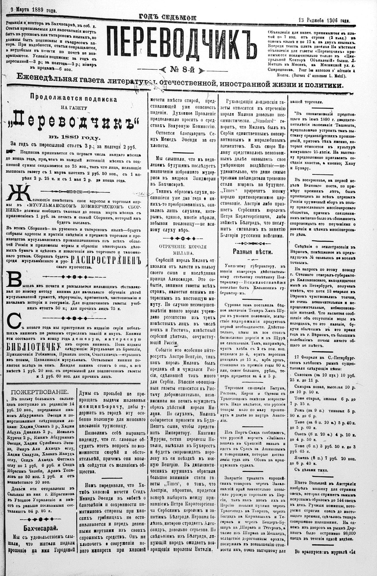 Tercüman, 03 March 1889 Year 7 No 8