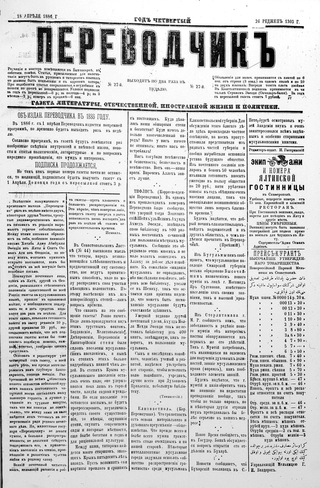 Turkish-Russian newspaper published in Crimea by İsmail Gaspıralı.