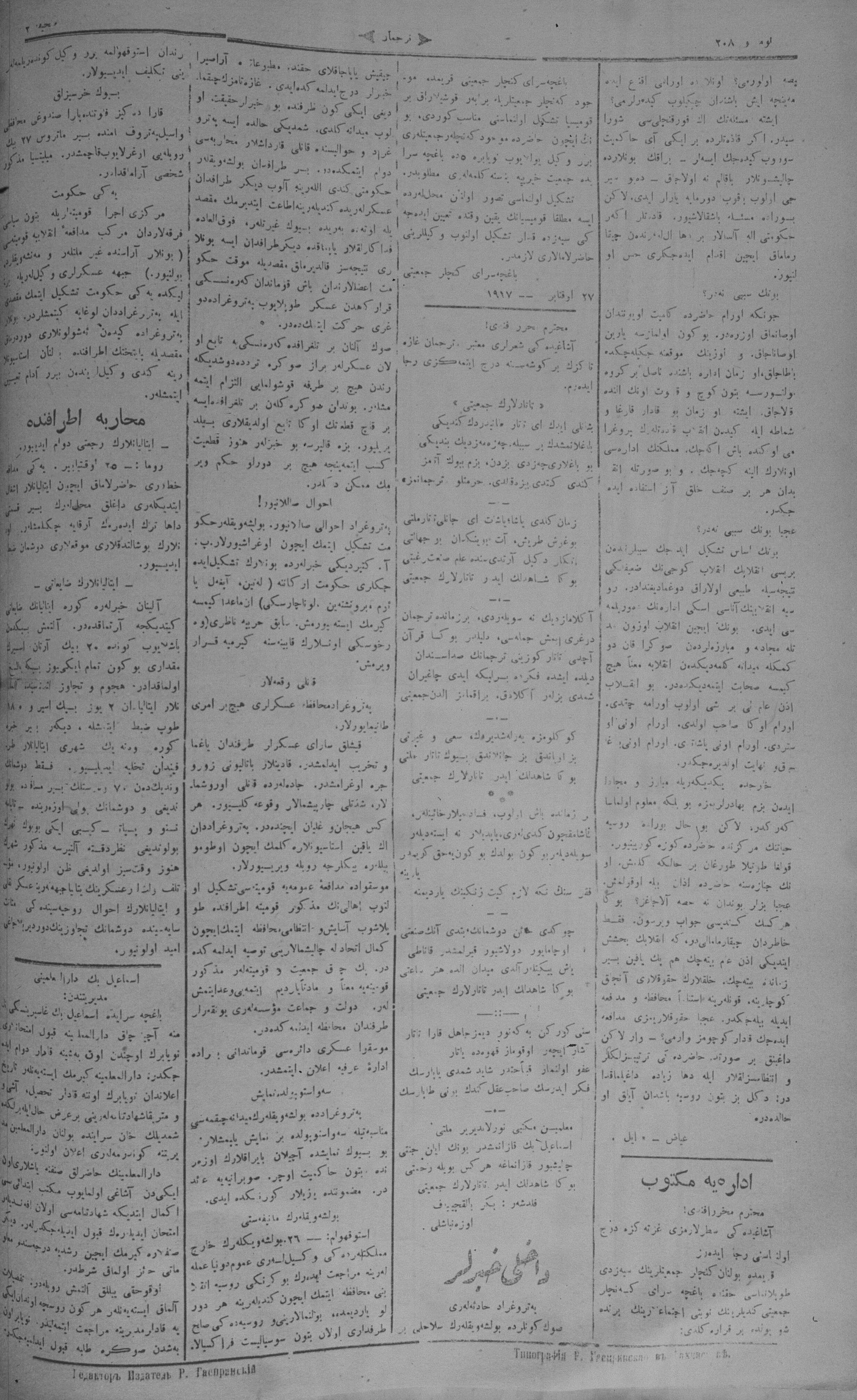 Tercüman, 30 October 1917 Year 35 No 208