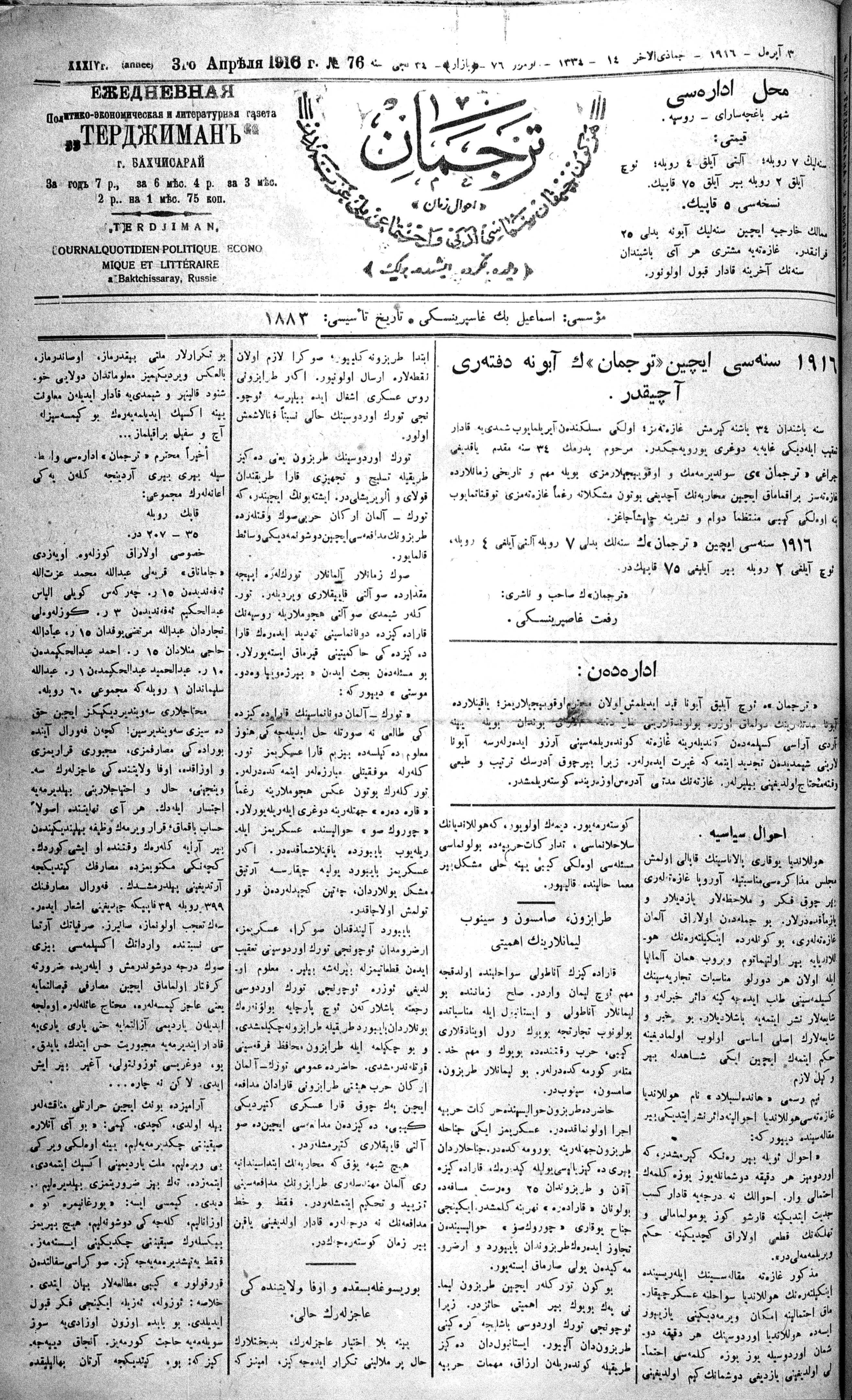 Turkish-Russian newspaper published in Crimea by İsmail Gaspıralı.