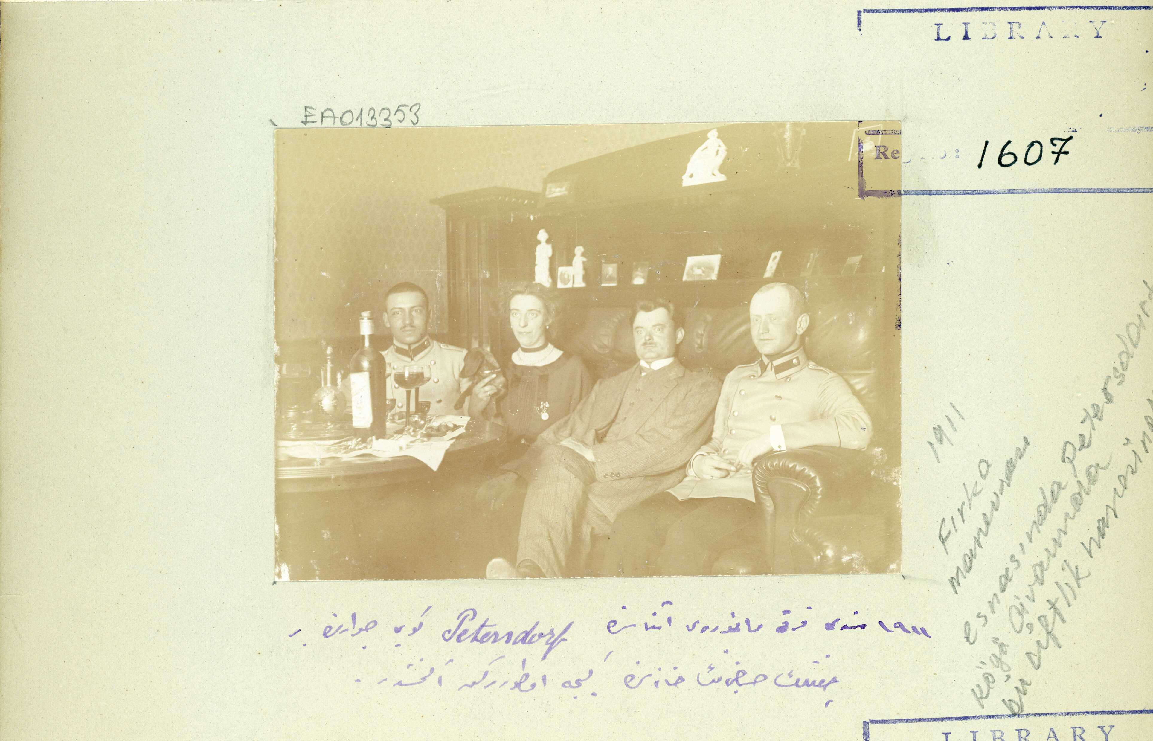 1911 senesi Fırka manevrası esnasında Petersdorf Köyü civarında bir çiftlik sahibesinin hanesinde gece otururken alınan fotoğraf