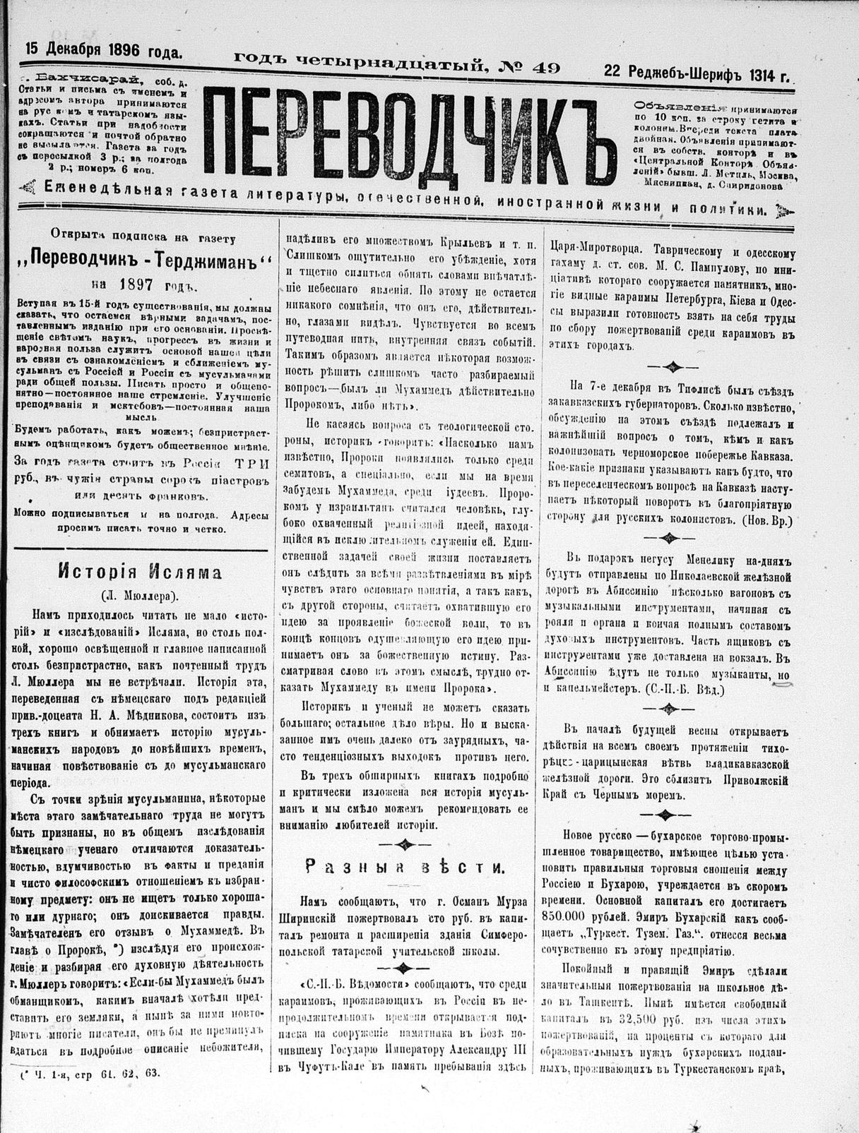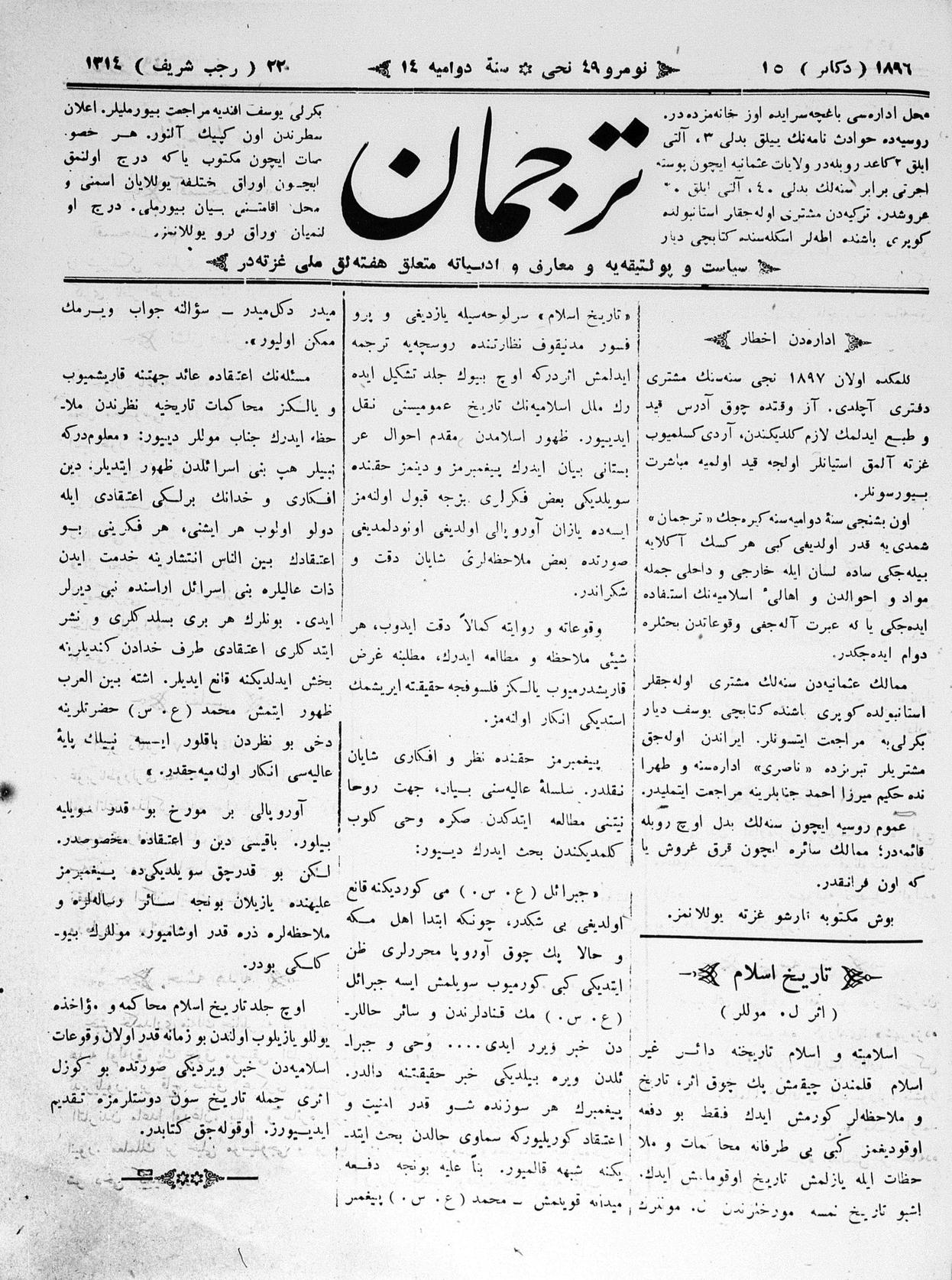 Tercüman, 15 December 1896 Year 14 No 49