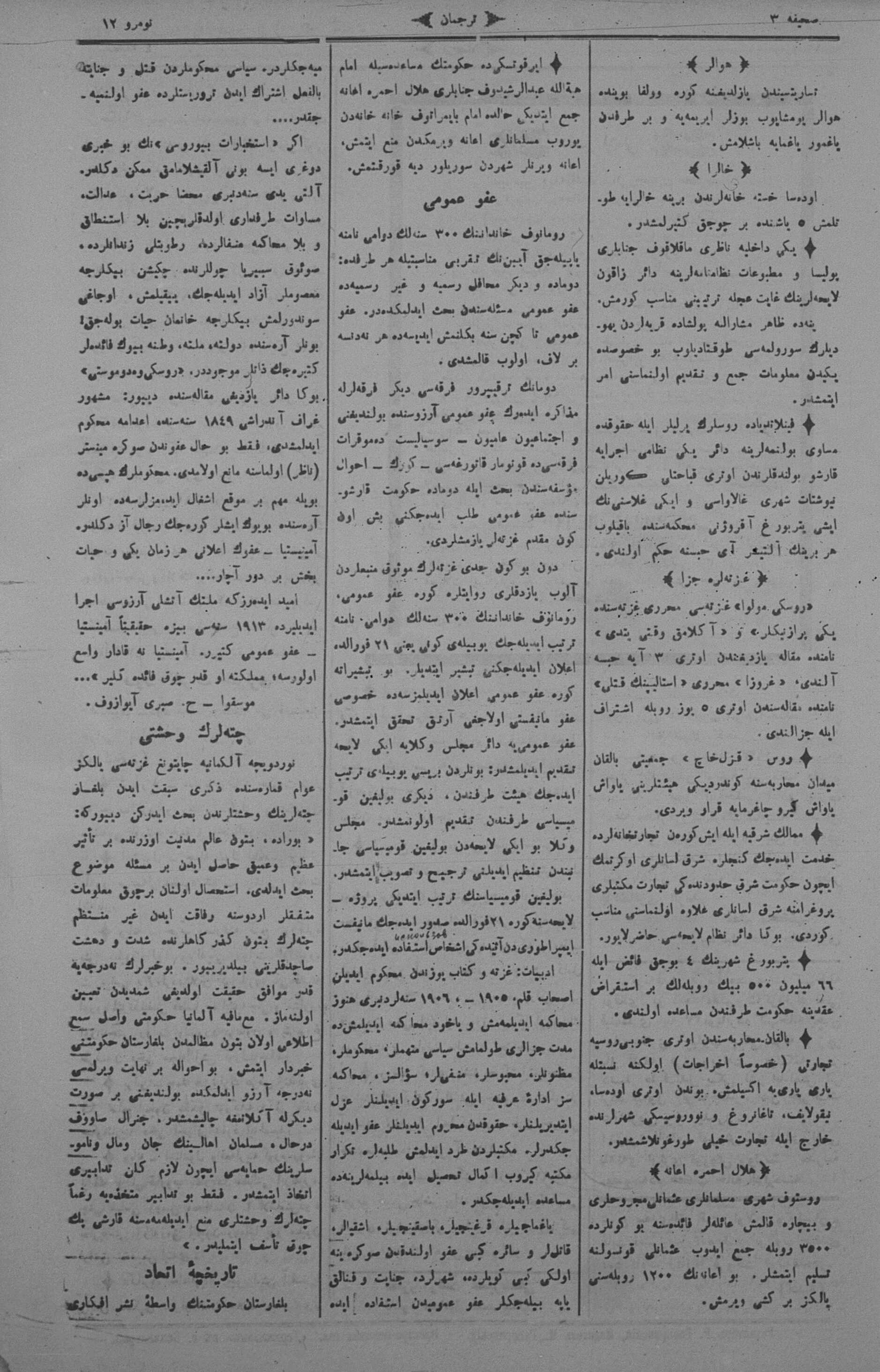 The name of the newspaper changed to Tercüman-ı Ahval-i Zaman in 1905. In 1909, it started to be published under its first name, Tercüman.