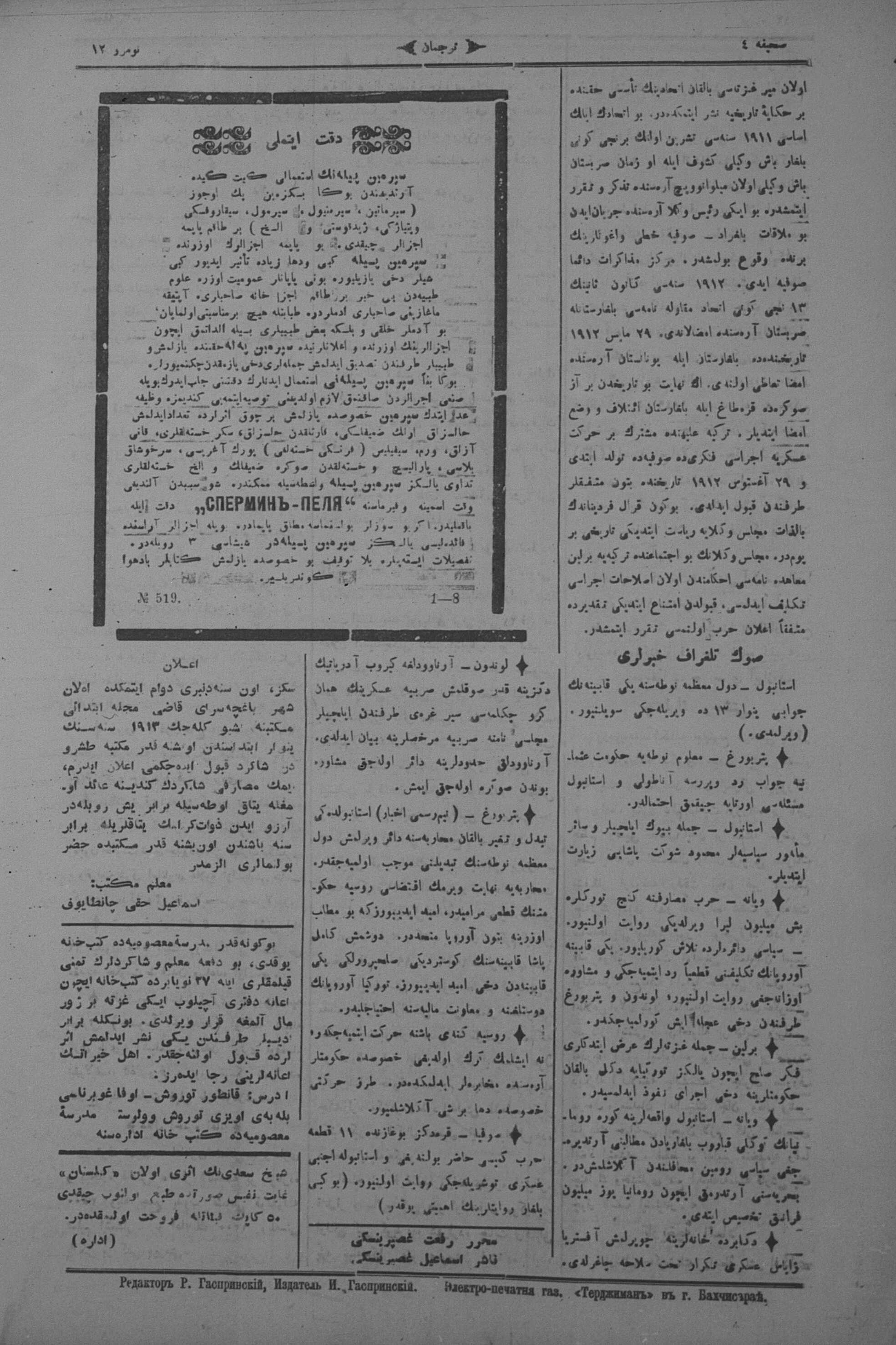 Turkish-Russian newspaper published in Crimea by İsmail Gaspıralı.