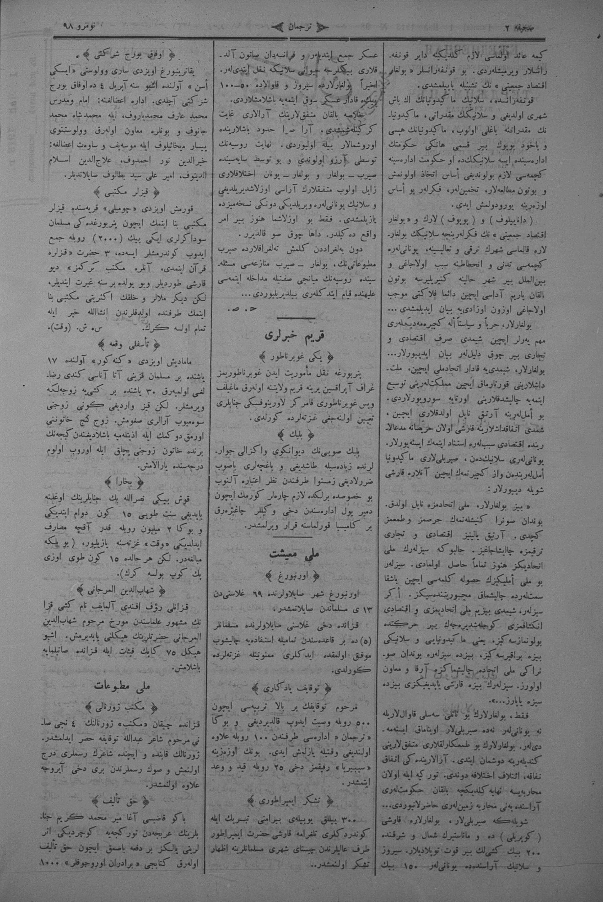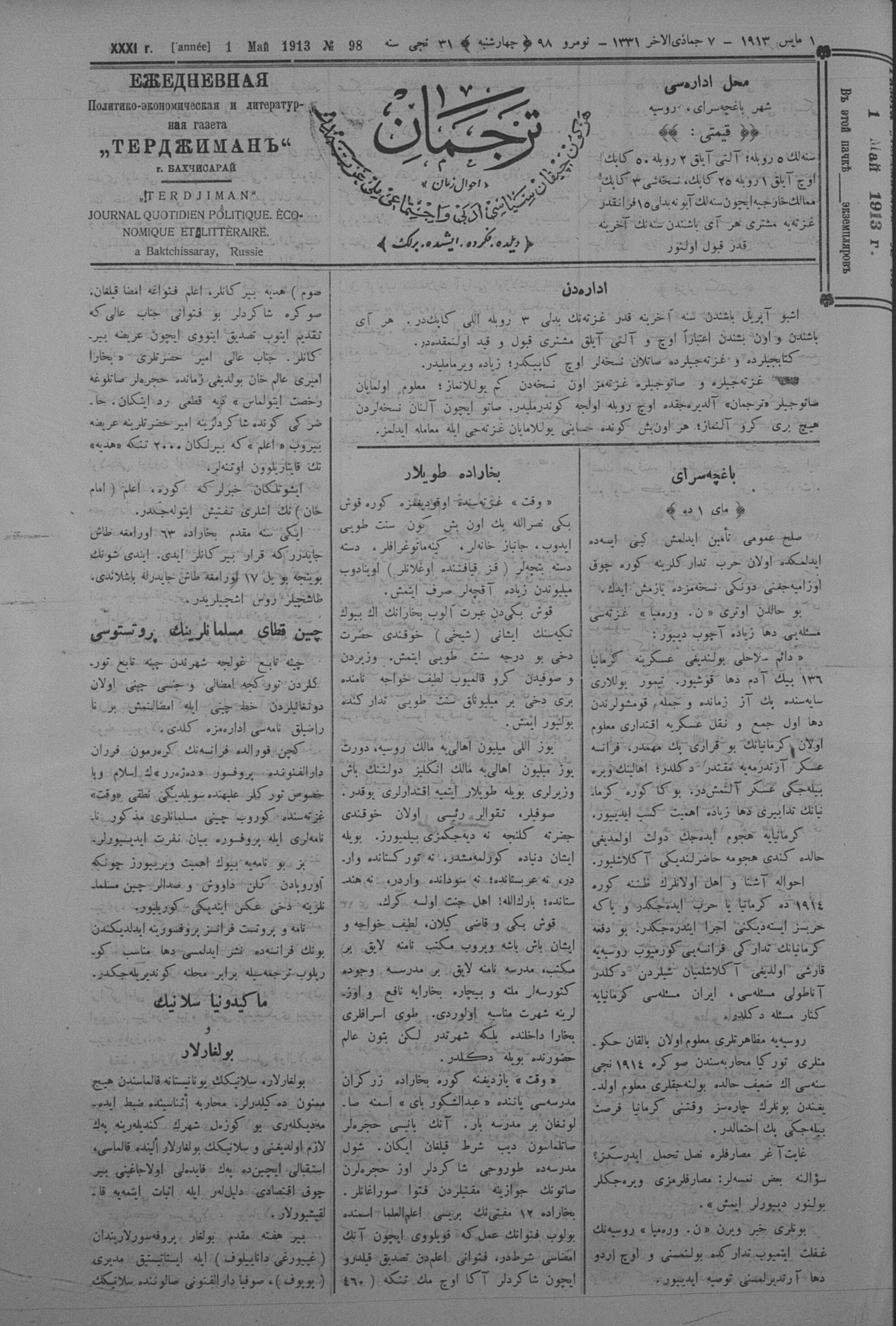 Tercüman, 01 May 1913 Year 31 No 98