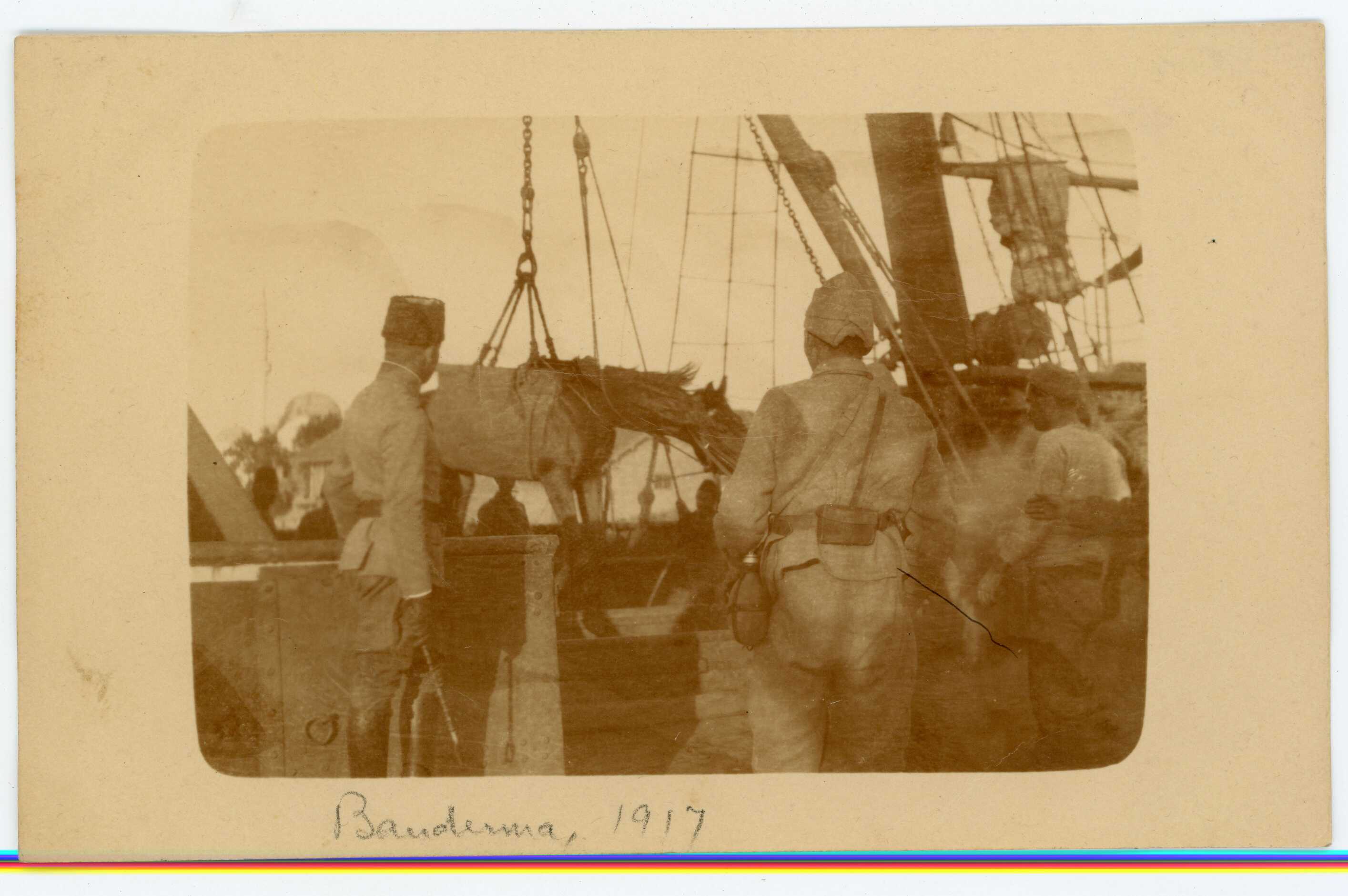Alman imparatoru II. Willhelm'i karşılamak üzere Bandırma'dan Akbaş'a hareket eden süvari bölüğünün atlarının gemiye tahmili