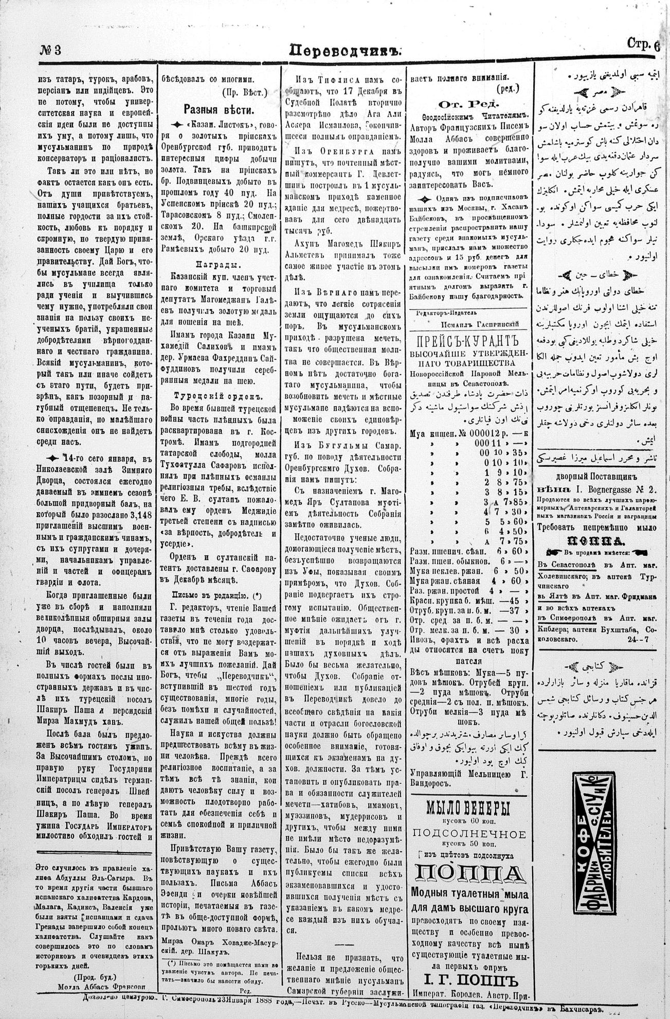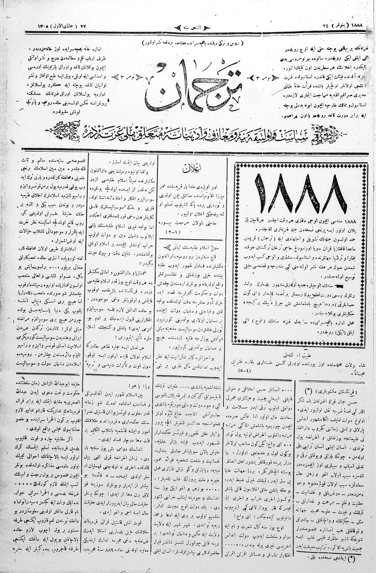 Tercüman, 24 January 1888 Year 6 No 3
