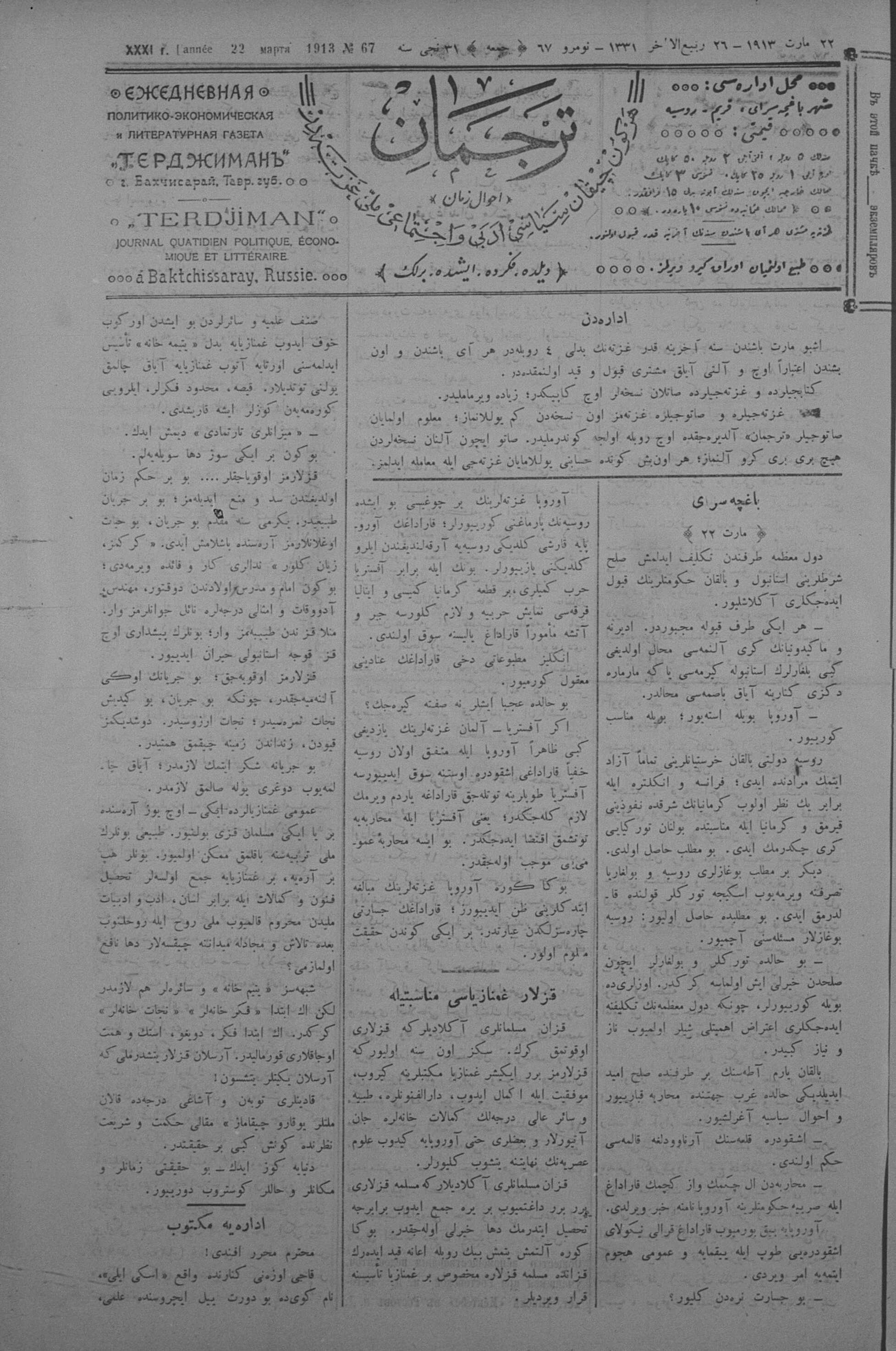 Tercüman, 22 March 1913 Year 31 No 67