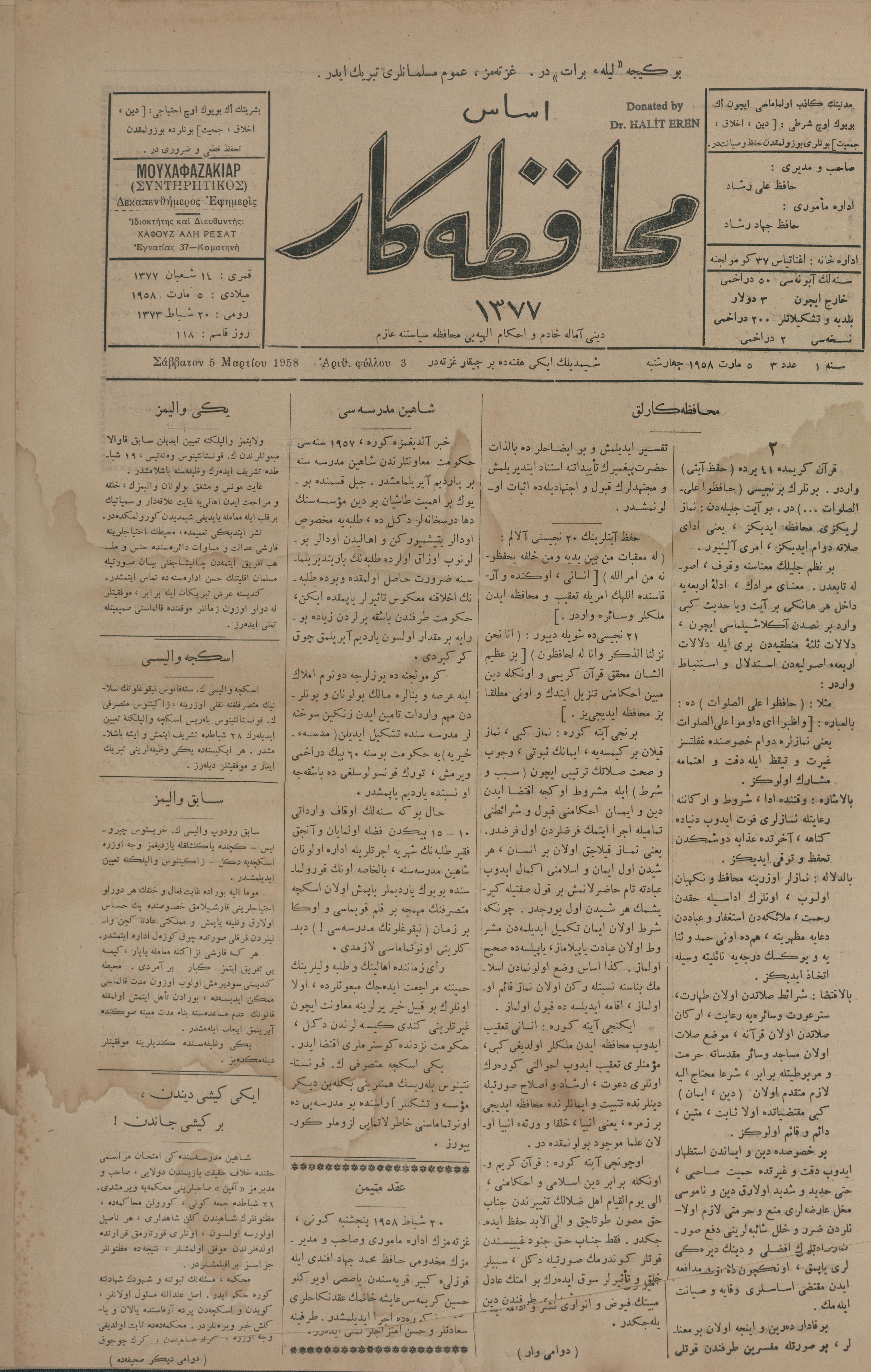 Esas muhafazakâr 1377, 5 Mart 1958 Sene 1 Aded 3