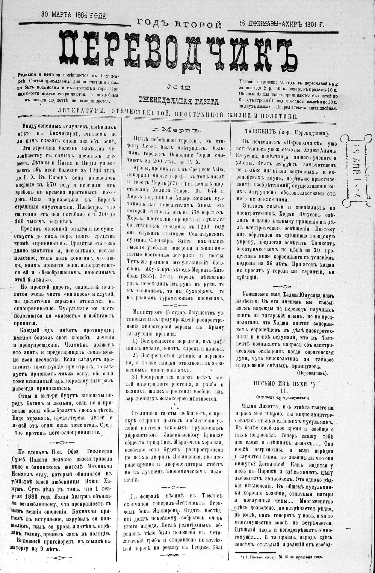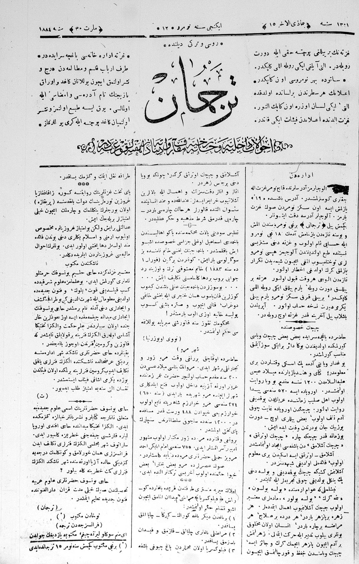 Tercüman, 30 March 1884 Year 2 No 12