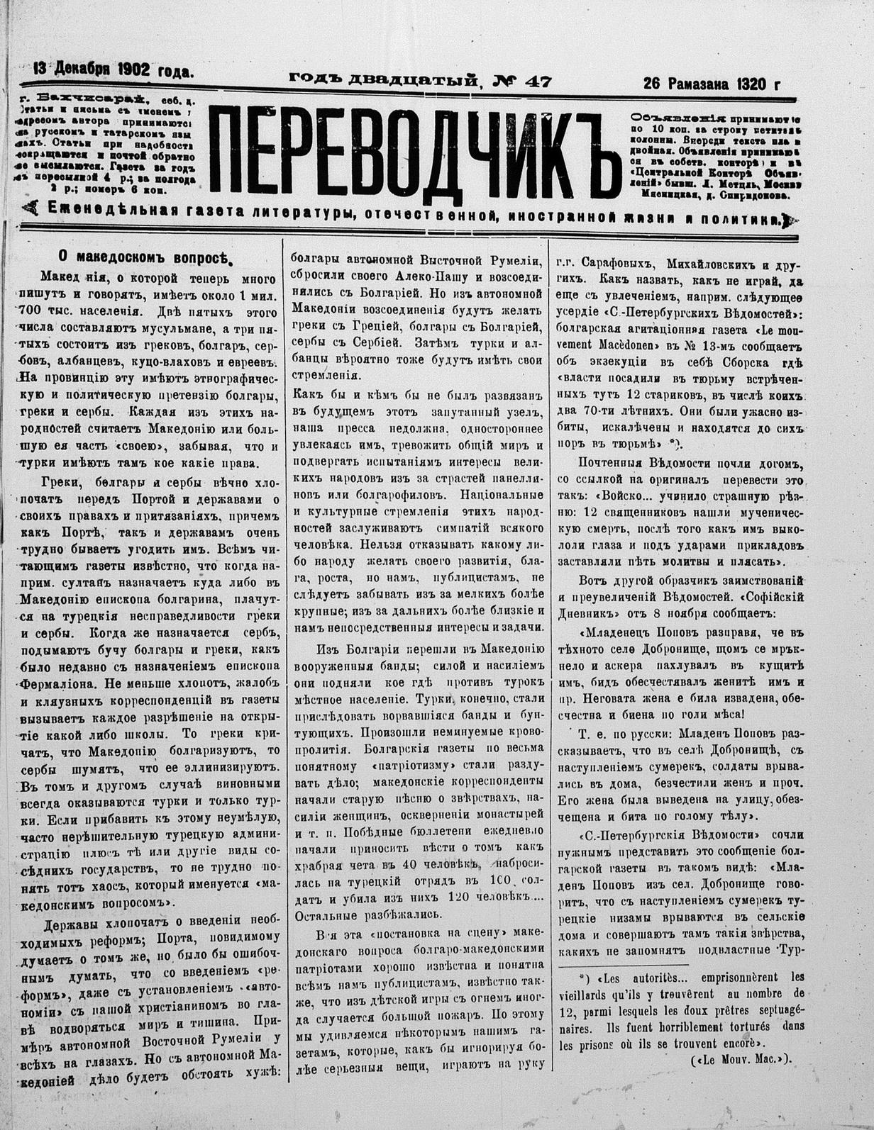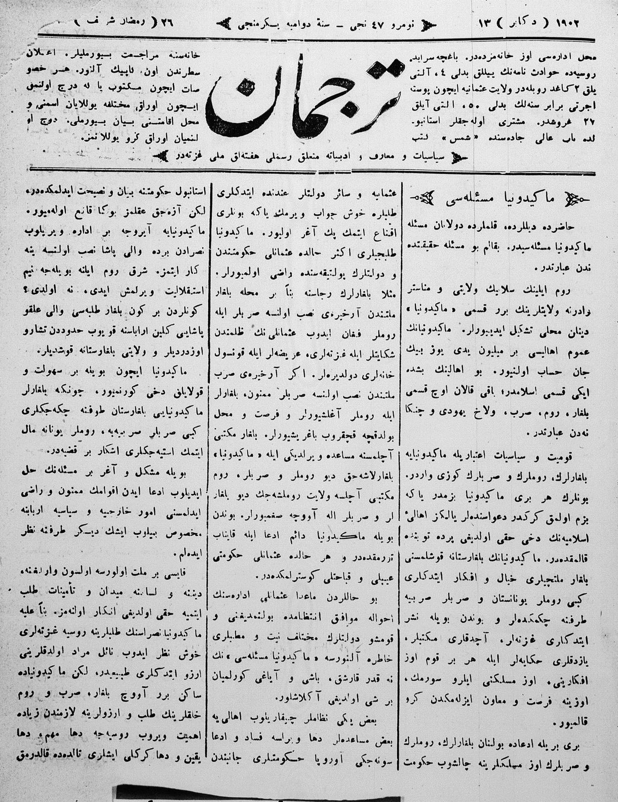 Tercüman, 13 December 1902 Year 20 No 47