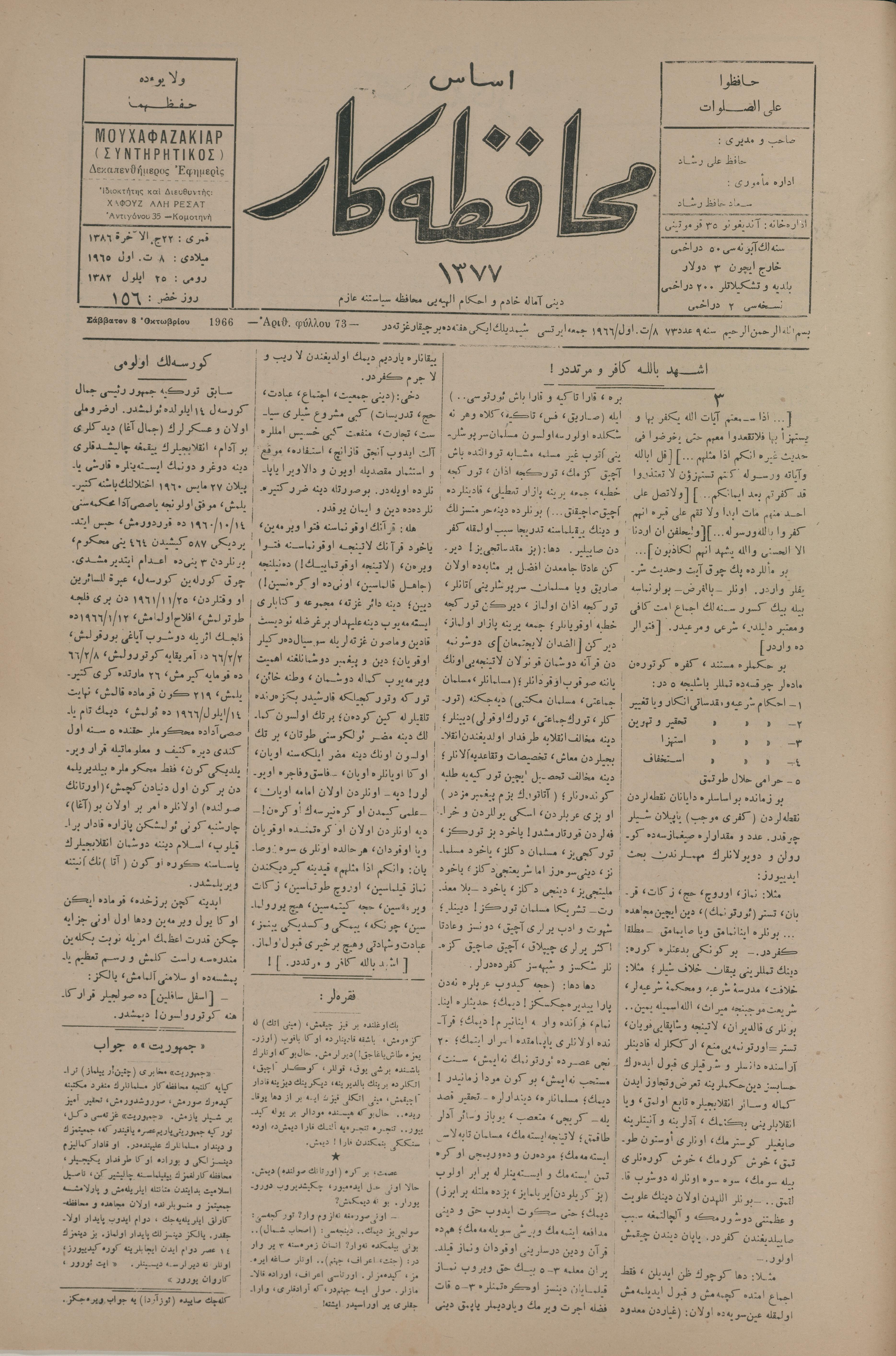 Esas muhafazakâr 1377, 8 Eylül 1966 Sene 9 Aded 73