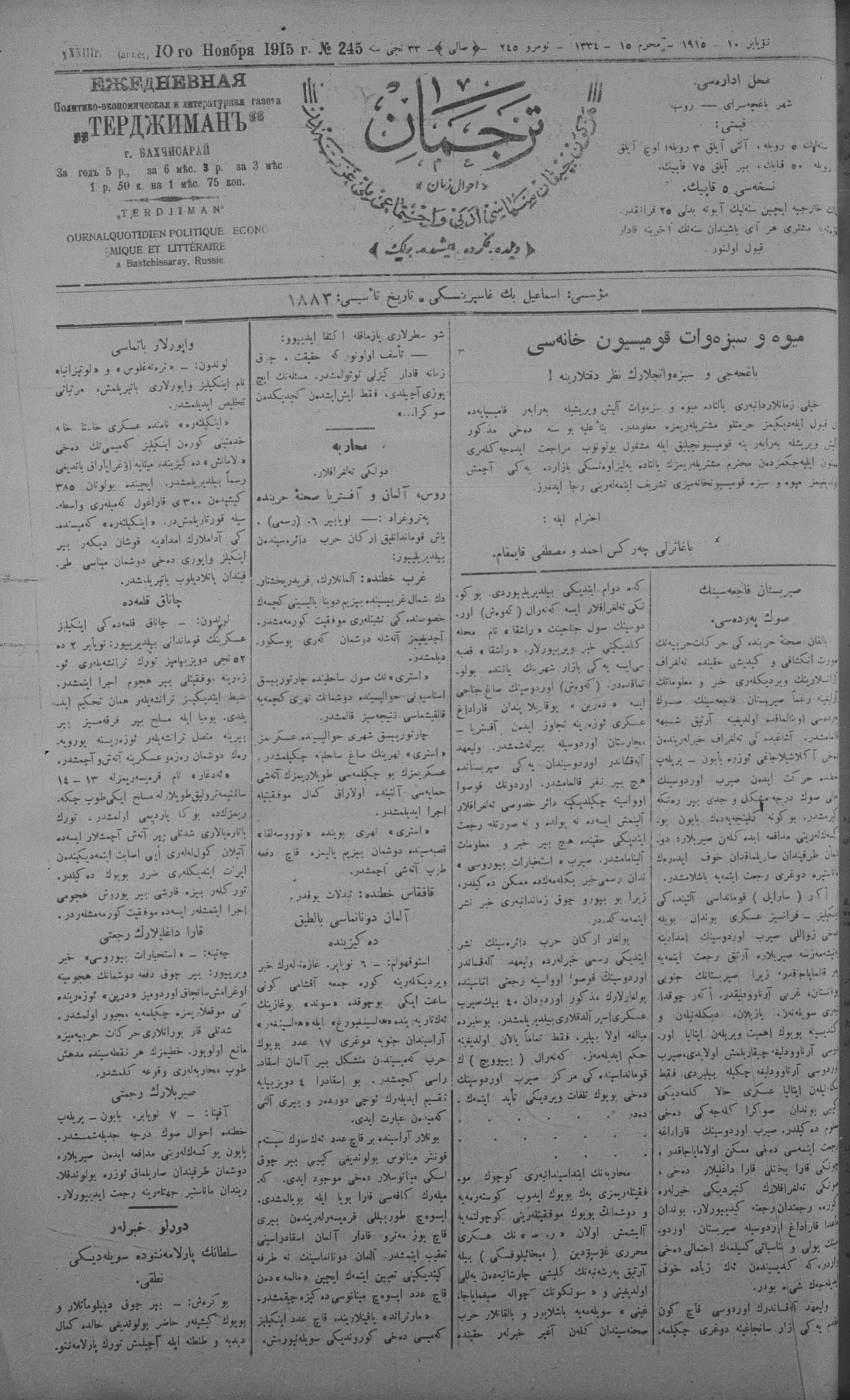 Turkish-Russian newspaper published in Crimea by İsmail Gaspıralı.