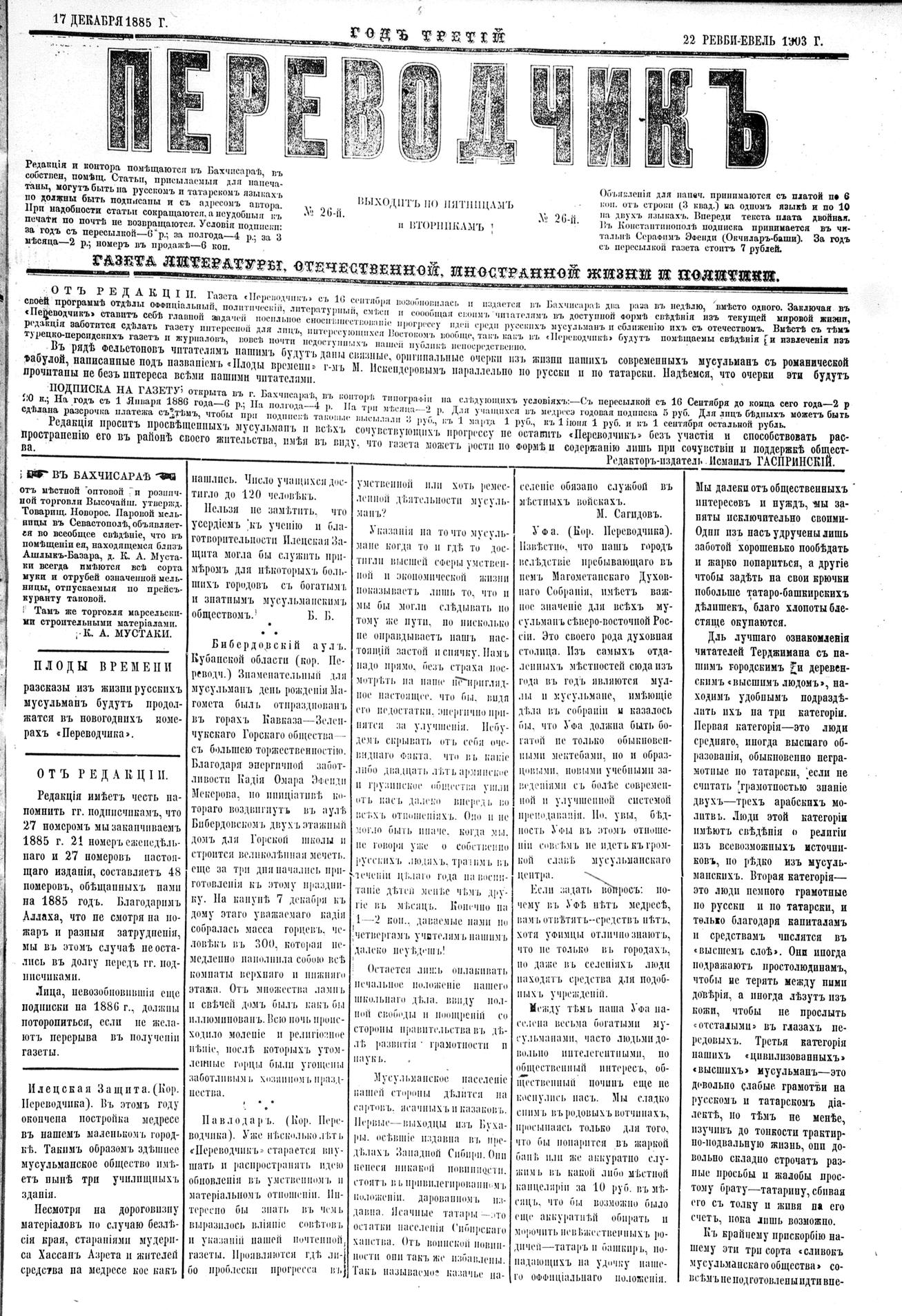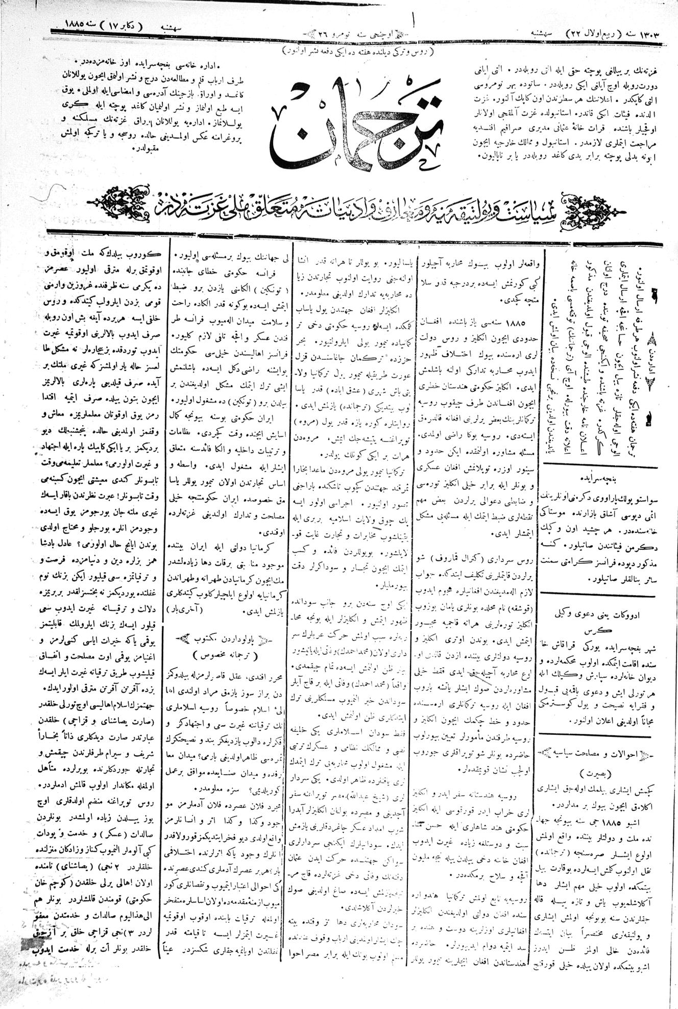 Tercüman, 17 December 1885 Year 3 No 26