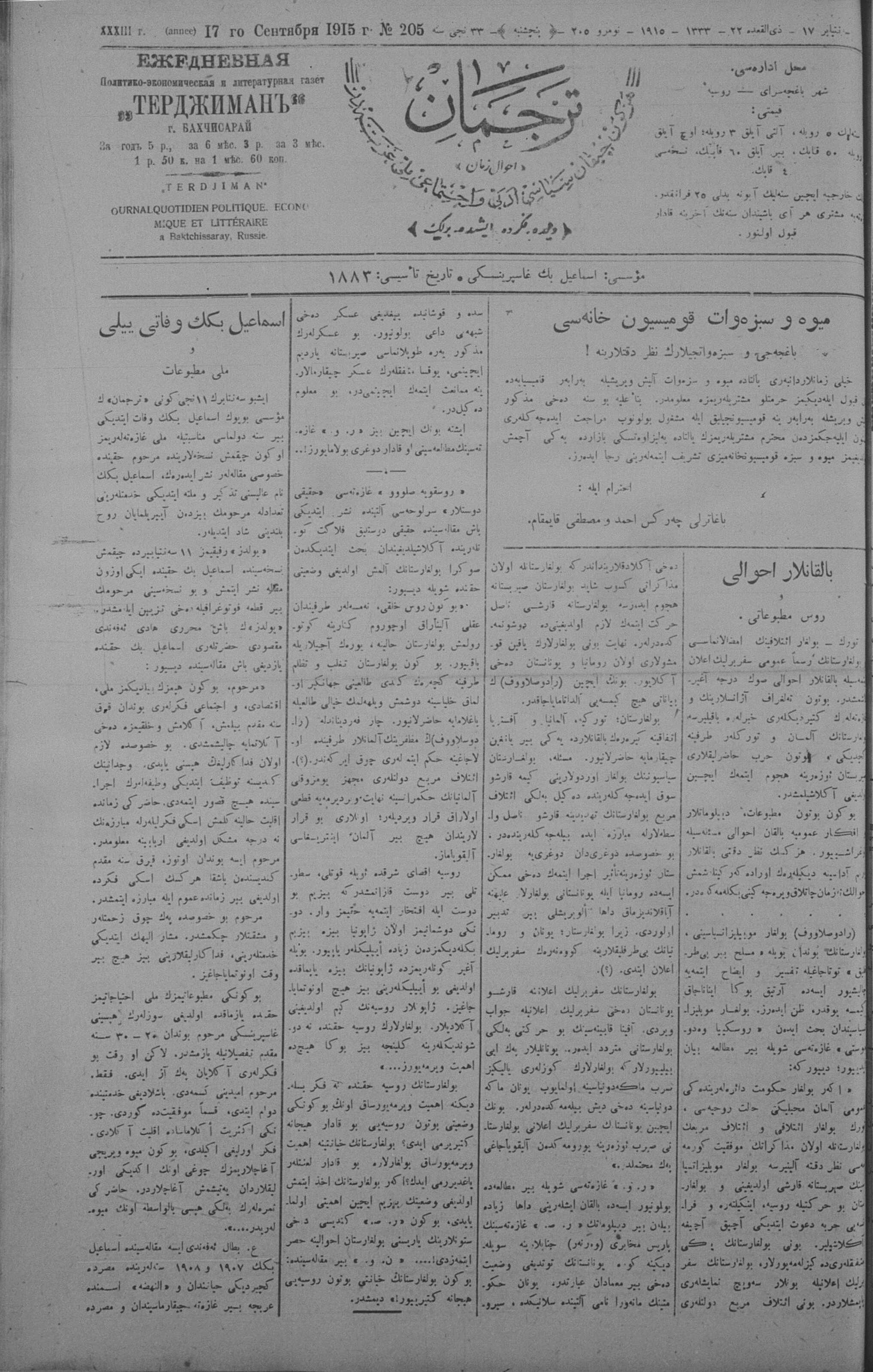 Turkish-Russian newspaper published in Crimea by İsmail Gaspıralı.