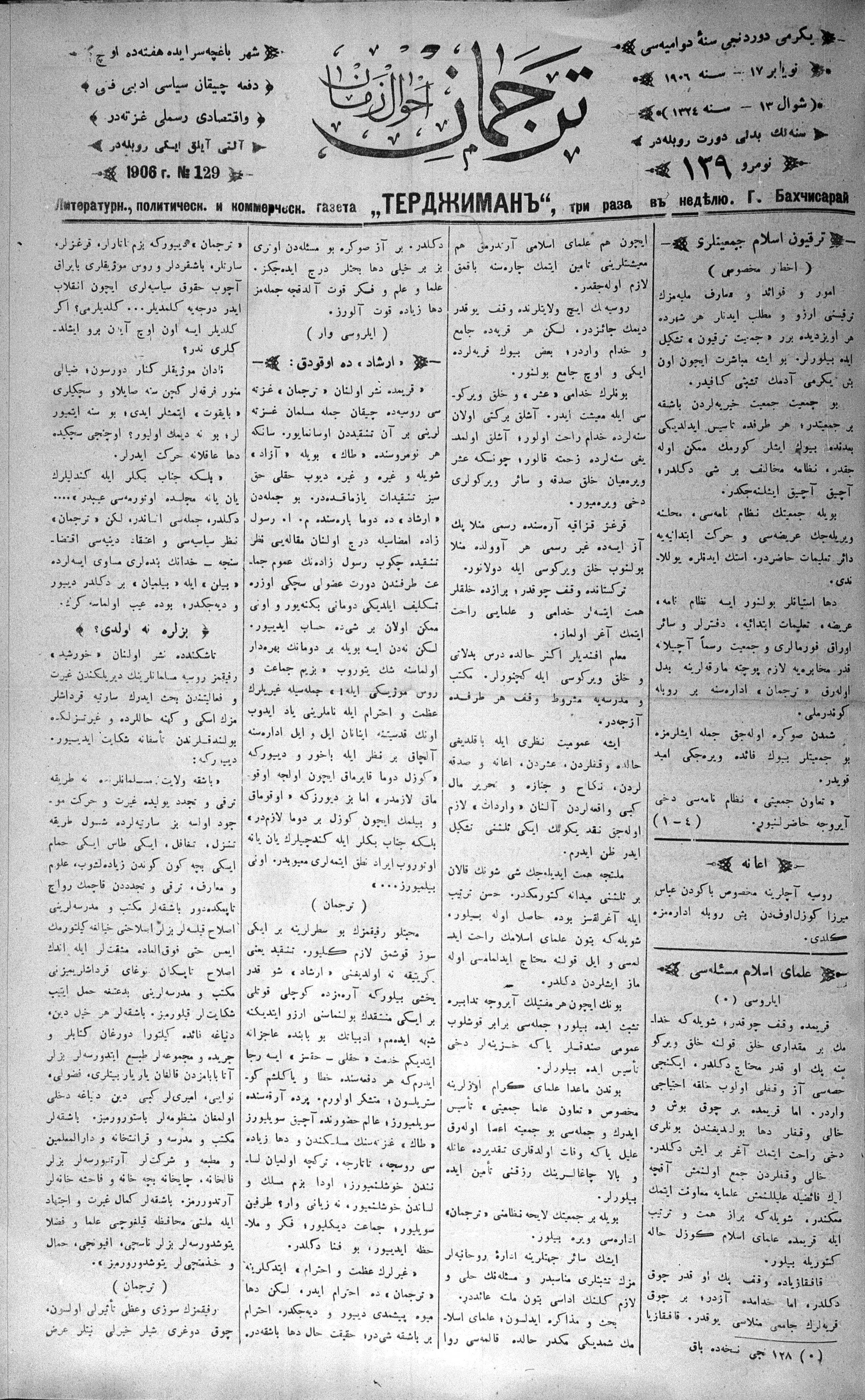 Tercüman, 17 November 1906 Year 24 No 129
