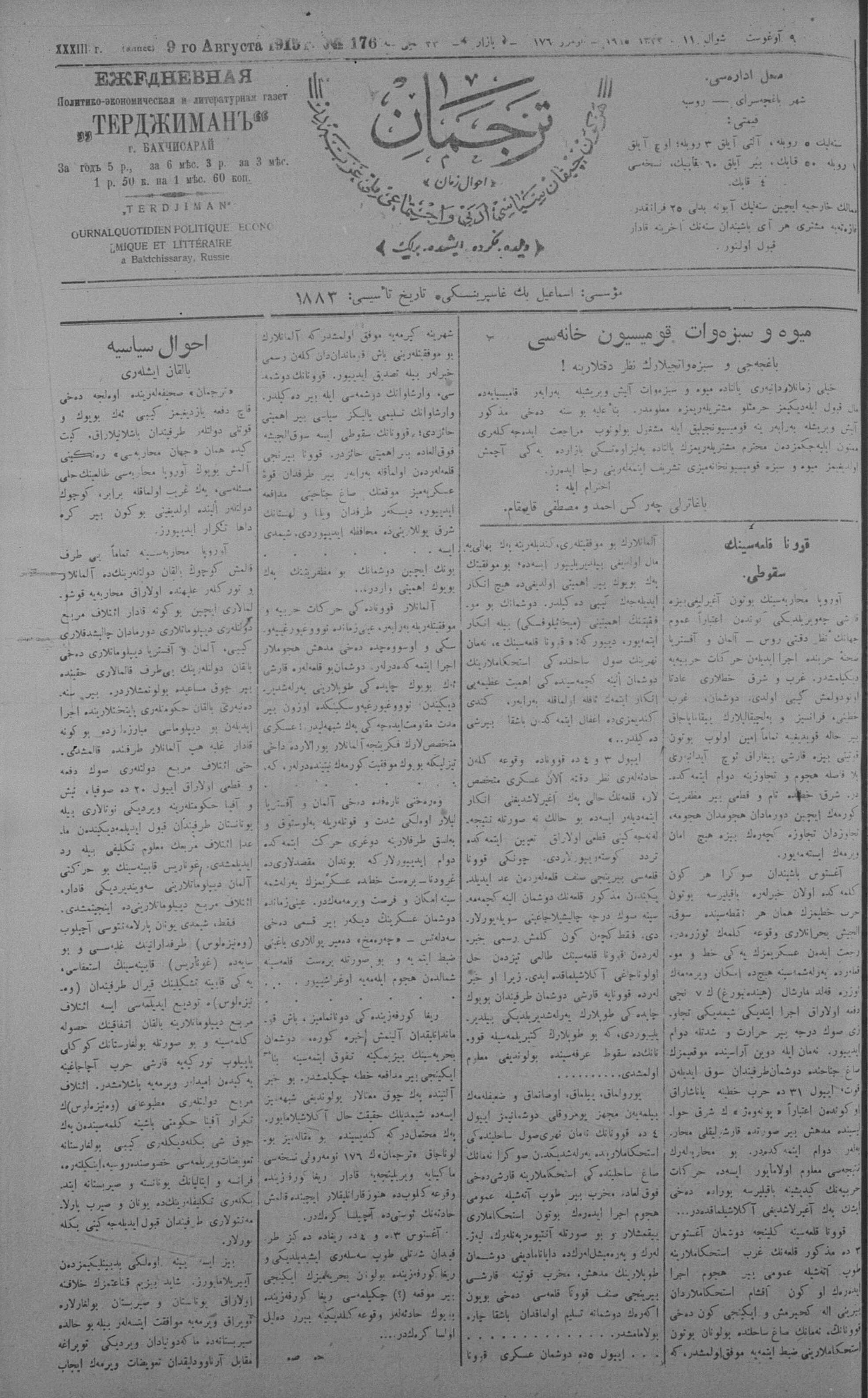 Turkish-Russian newspaper published in Crimea by İsmail Gaspıralı.