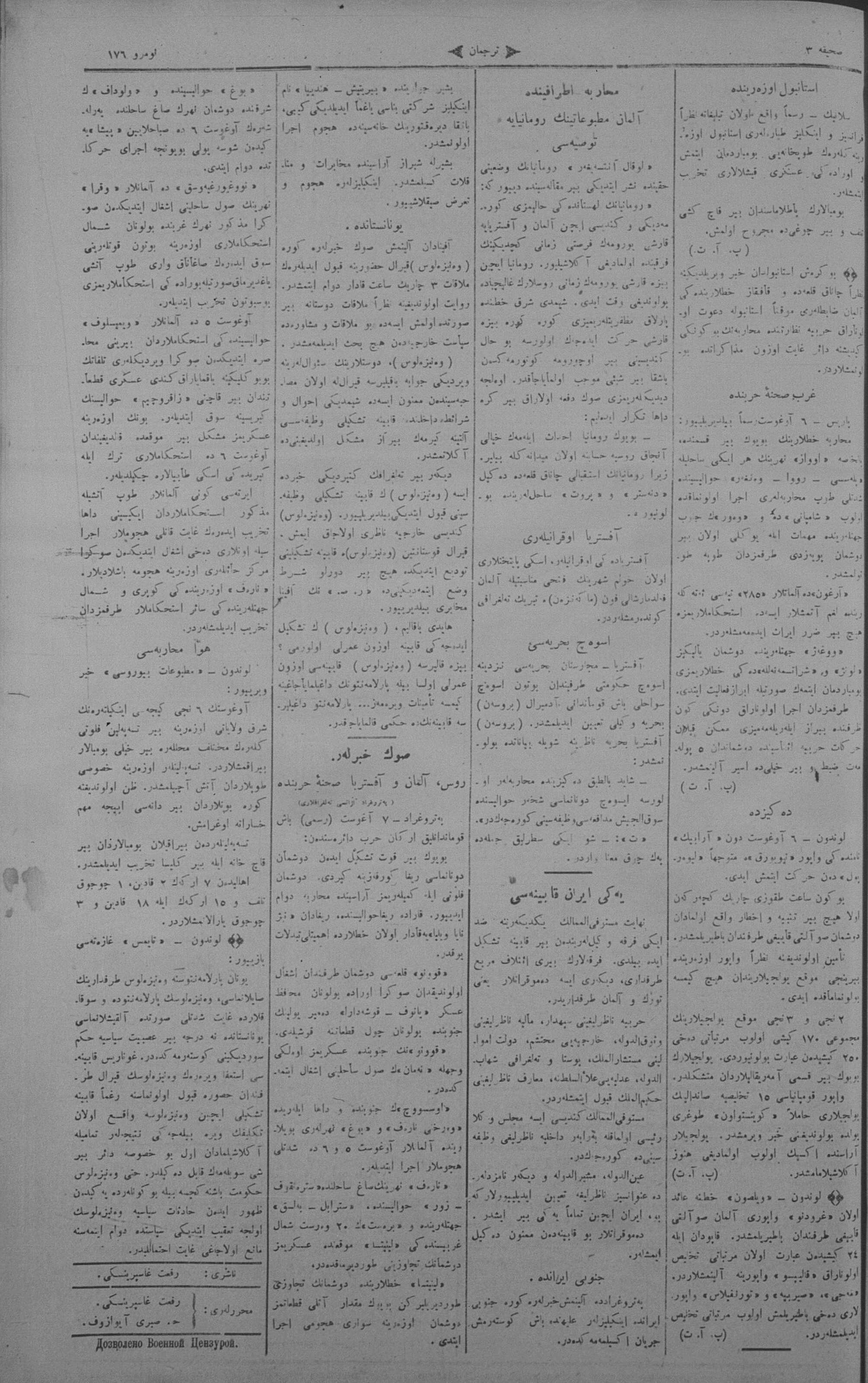 The name of the newspaper changed to Tercüman-ı Ahval-i Zaman in 1905. In 1909, it started to be published under its first name, Tercüman.