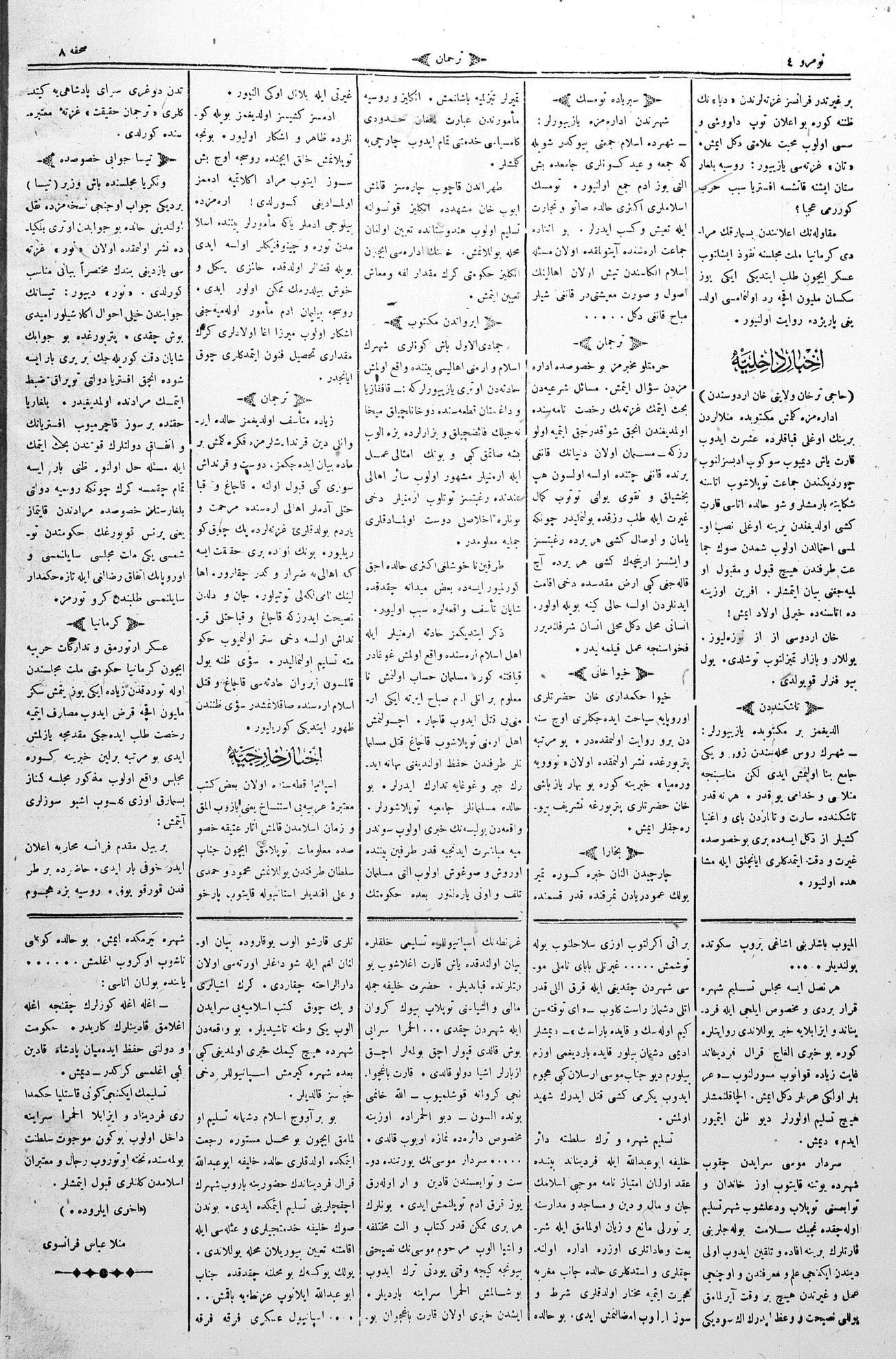 The name of the newspaper changed to Tercüman-ı Ahval-i Zaman in 1905. In 1909, it started to be published under its first name, Tercüman.