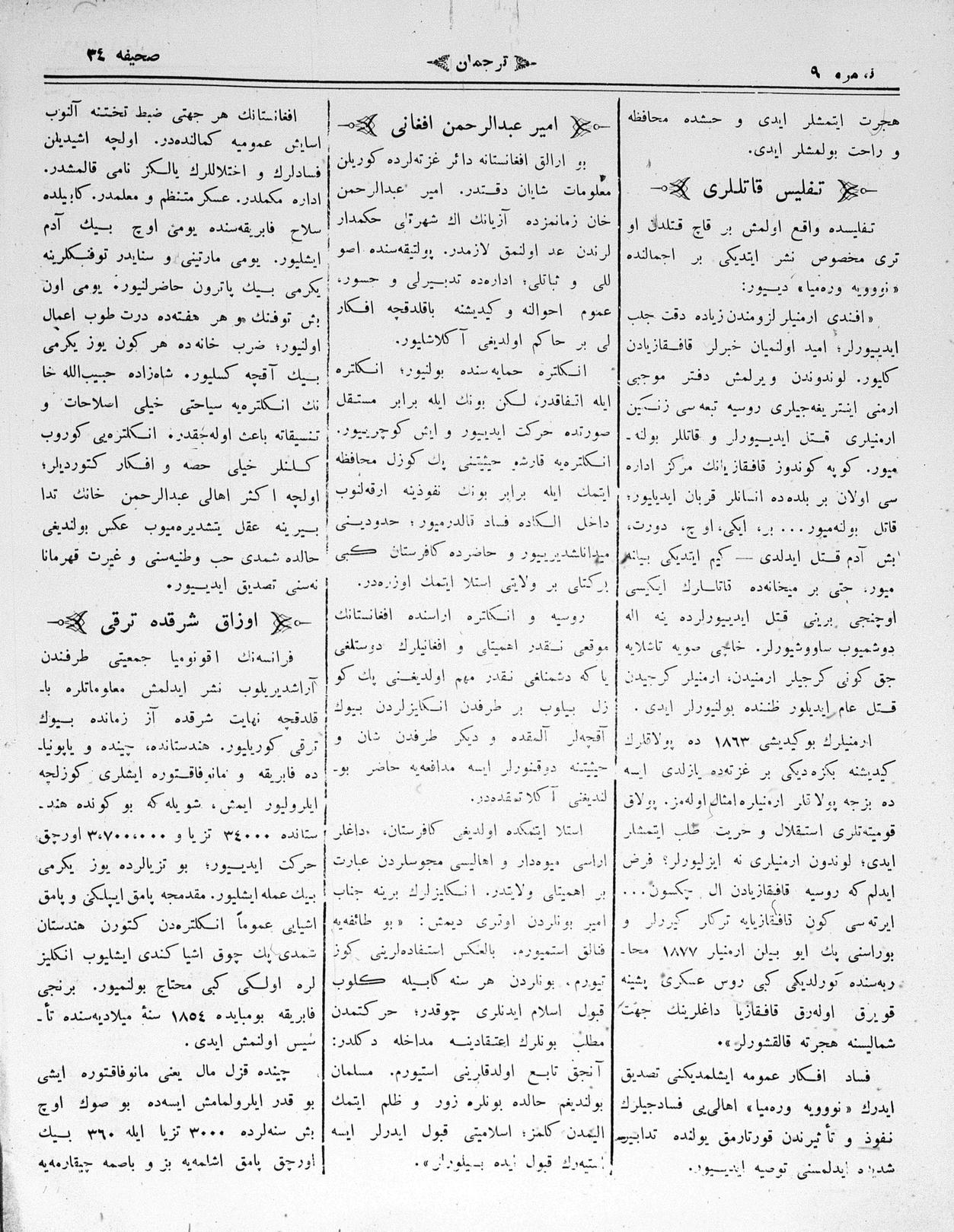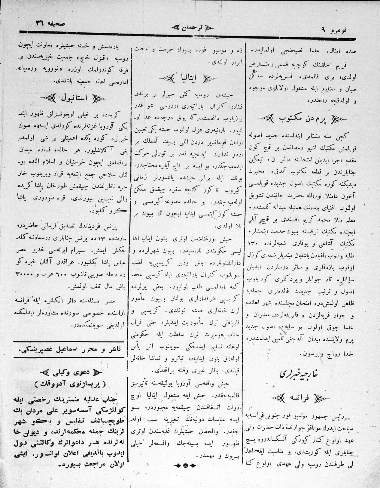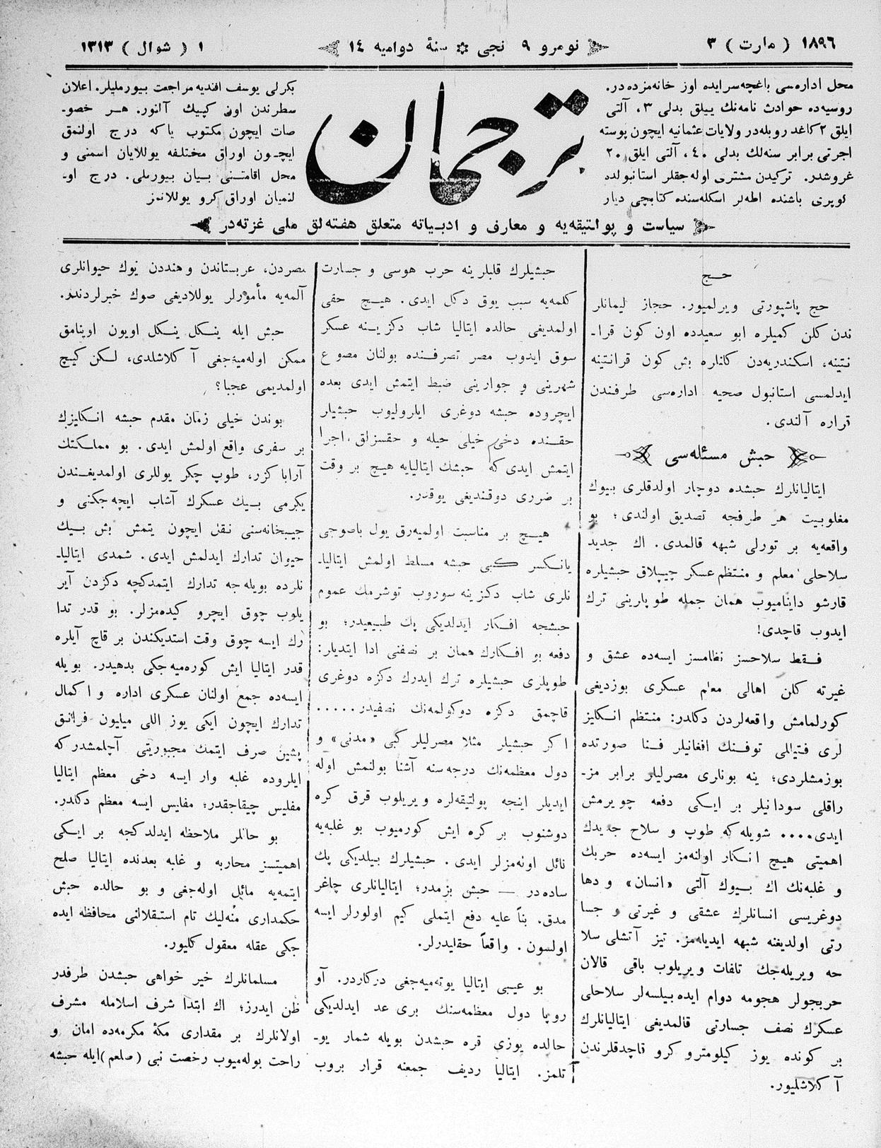 The name of the newspaper changed to Tercüman-ı Ahval-i Zaman in 1905. In 1909, it started to be published under its first name, Tercüman.