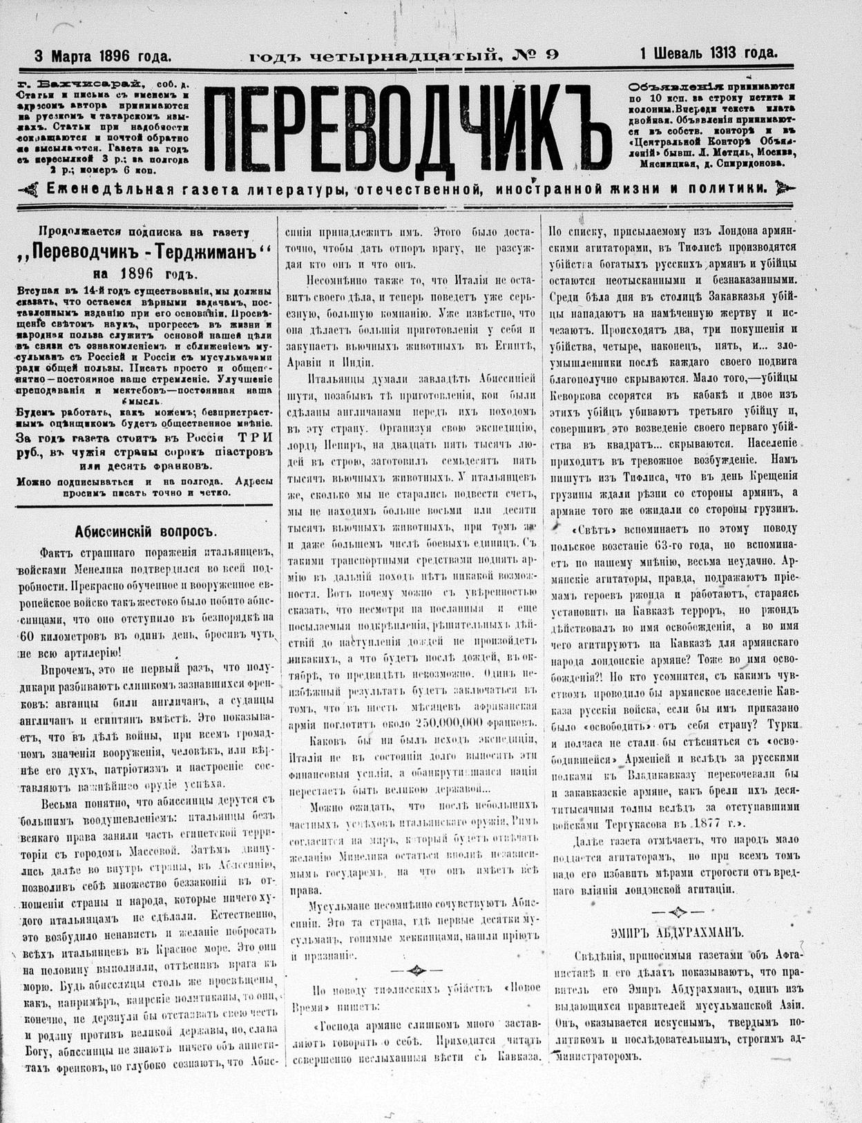 Turkish-Russian newspaper published in Crimea by İsmail Gaspıralı.