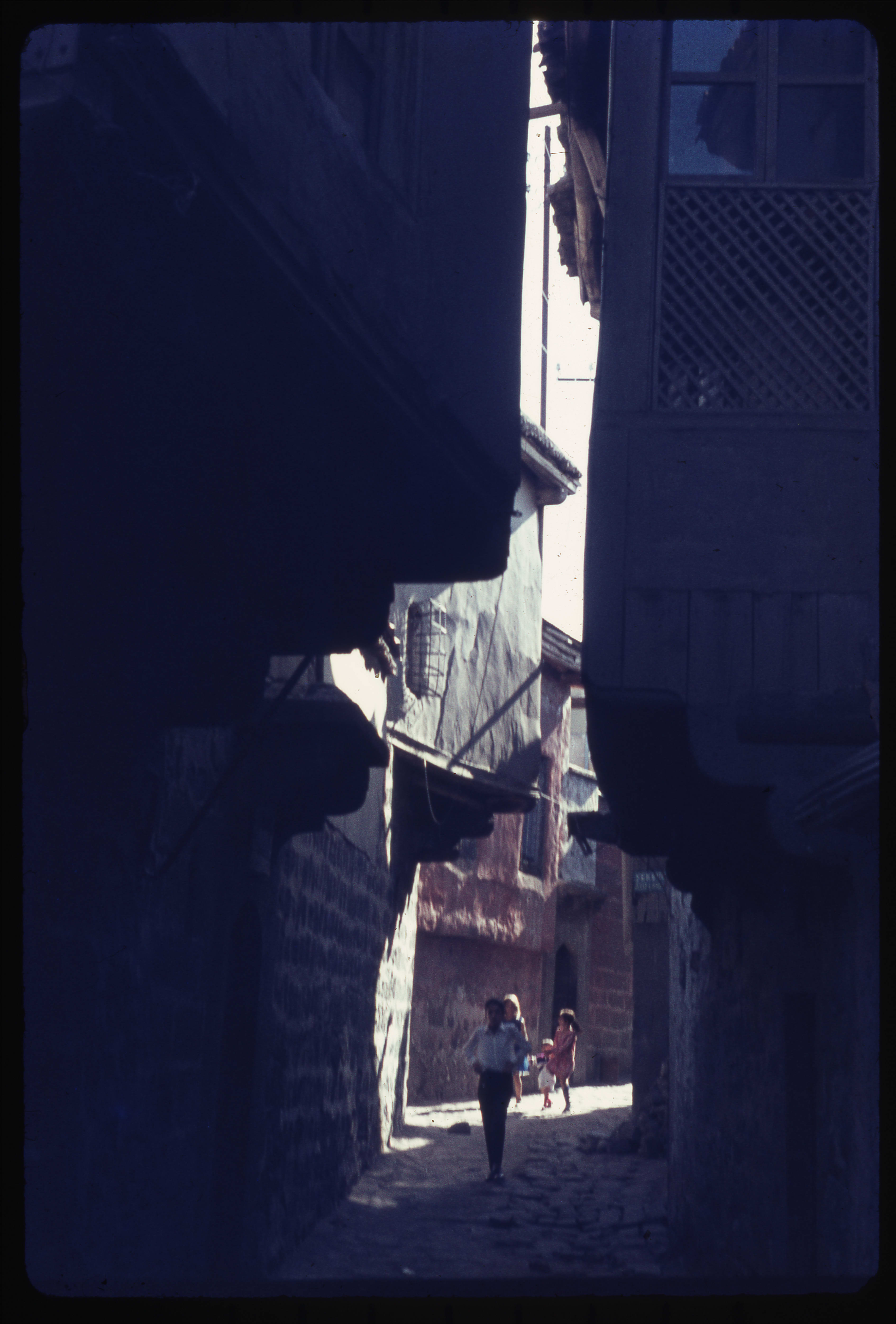 Diyarbakır'da ahşap evlerin bulunduğu dar bir sokak