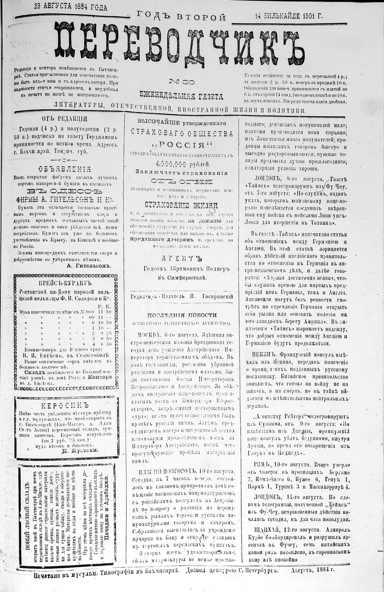 Turkish-Russian newspaper published in Crimea by İsmail Gaspıralı.