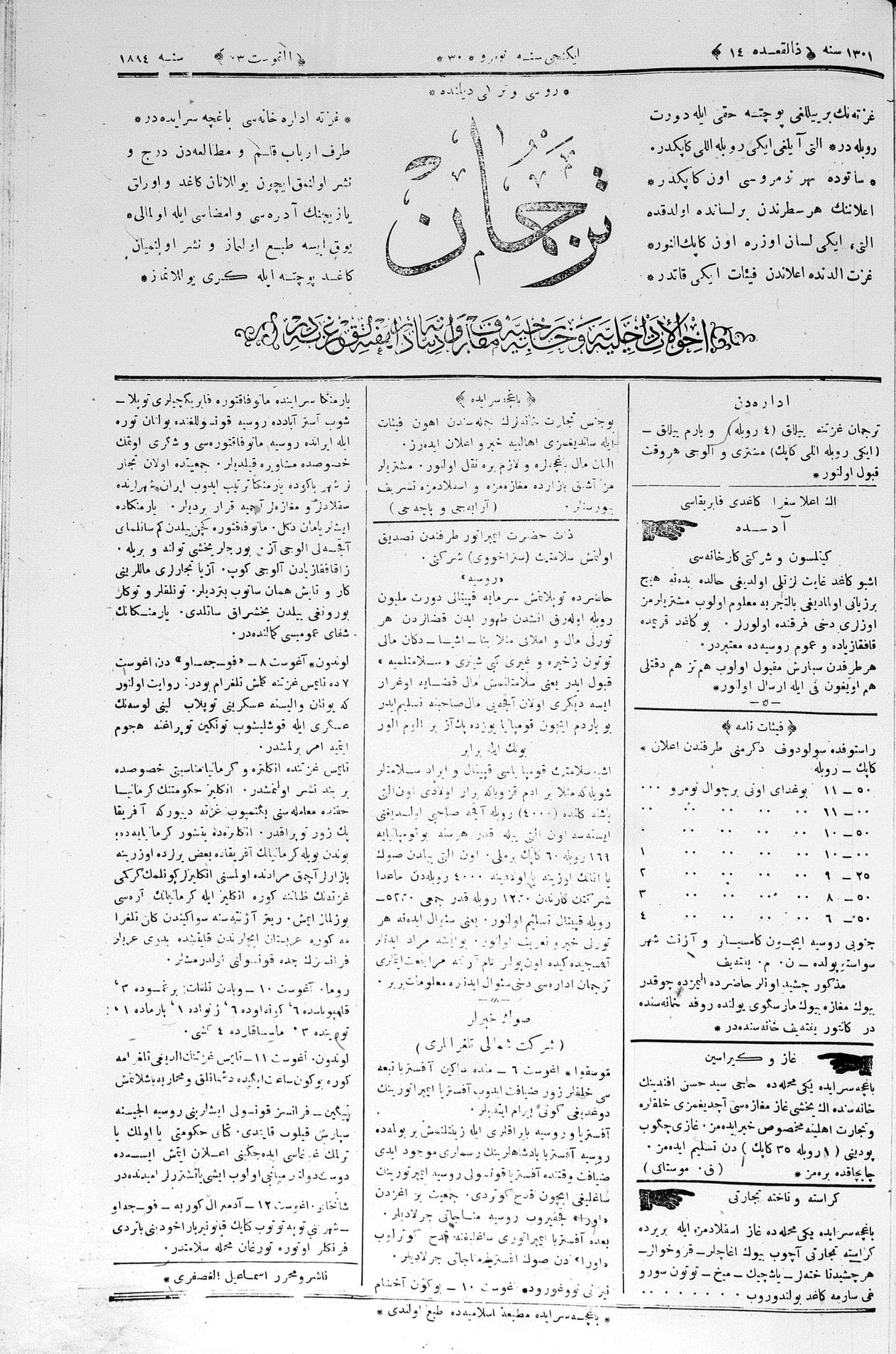 Tercüman, 23 August 1884 Year 2 No 30