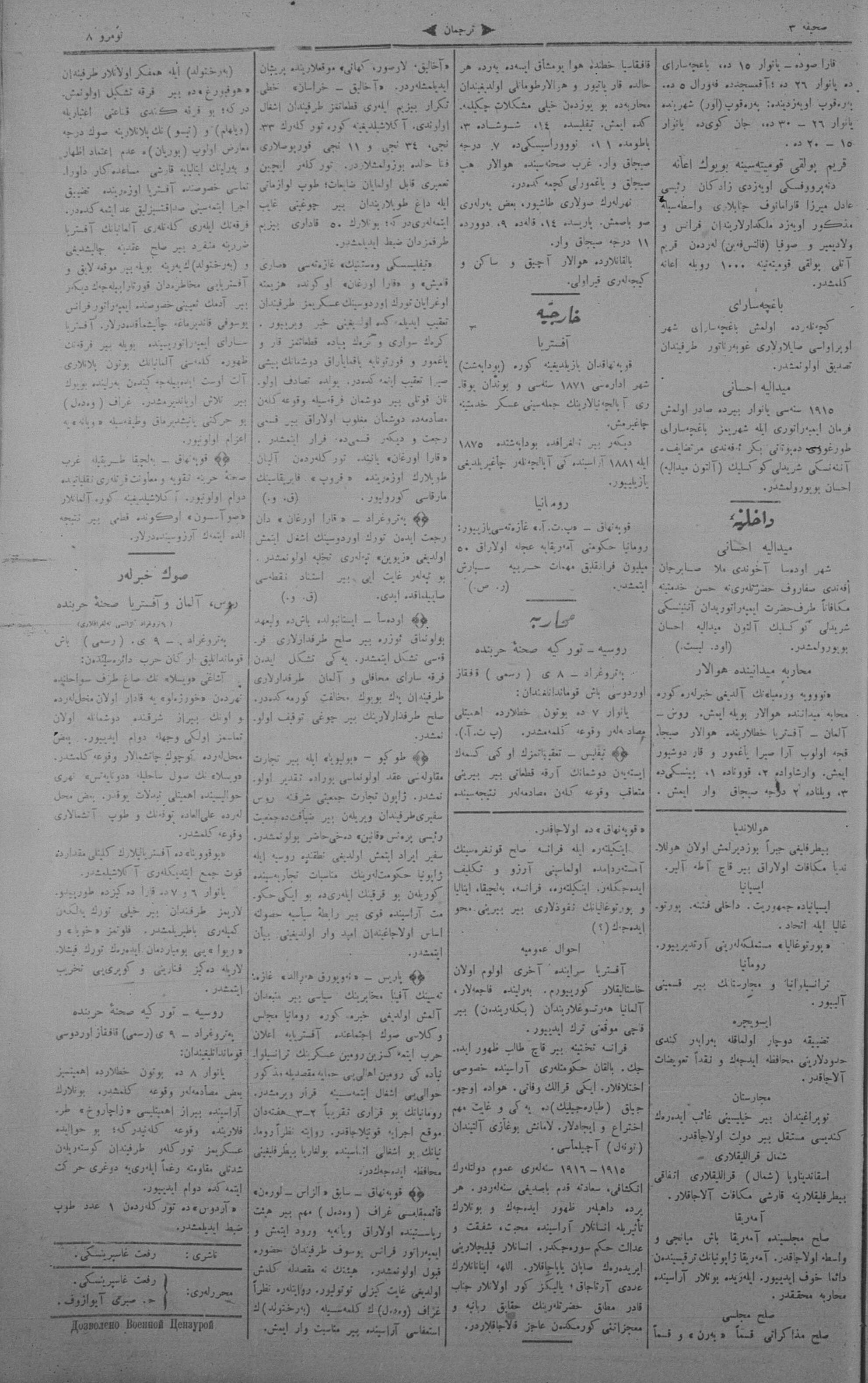 Tercüman, 11 January 1915 Year 33 No 8