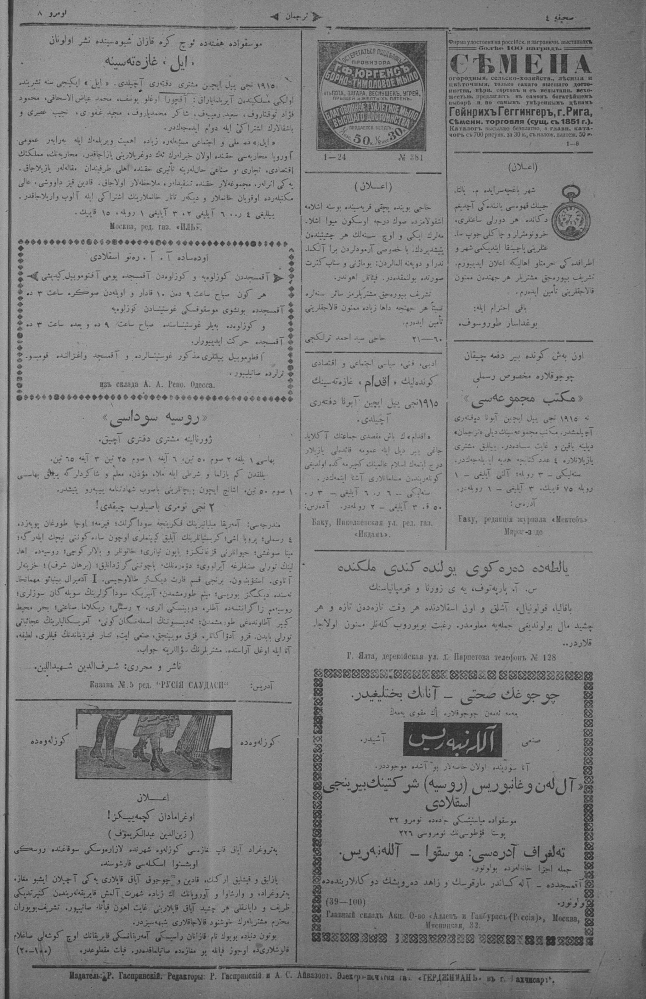 Turkish-Russian newspaper published in Crimea by İsmail Gaspıralı.