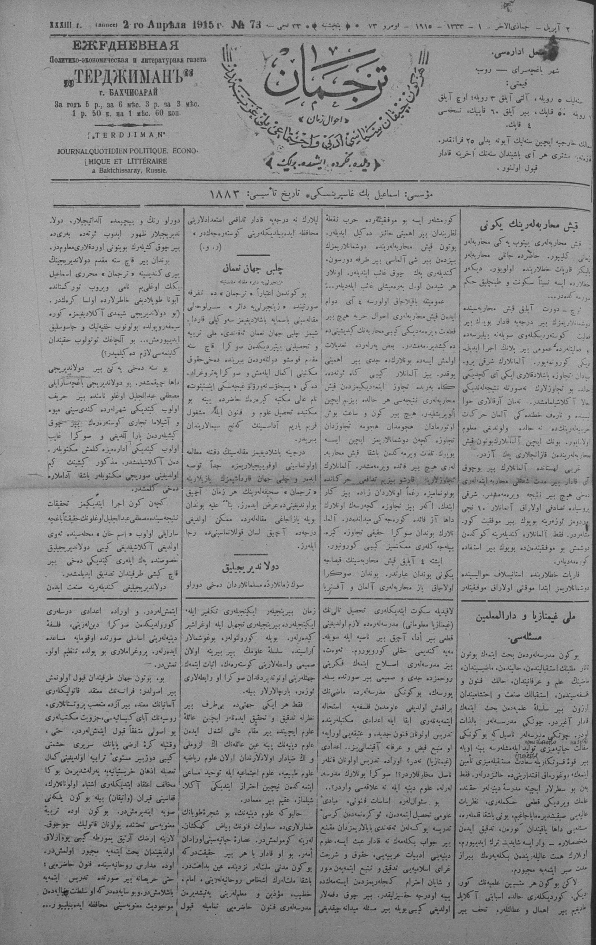 Tercüman, 02 April 1915 Year 33 No 73