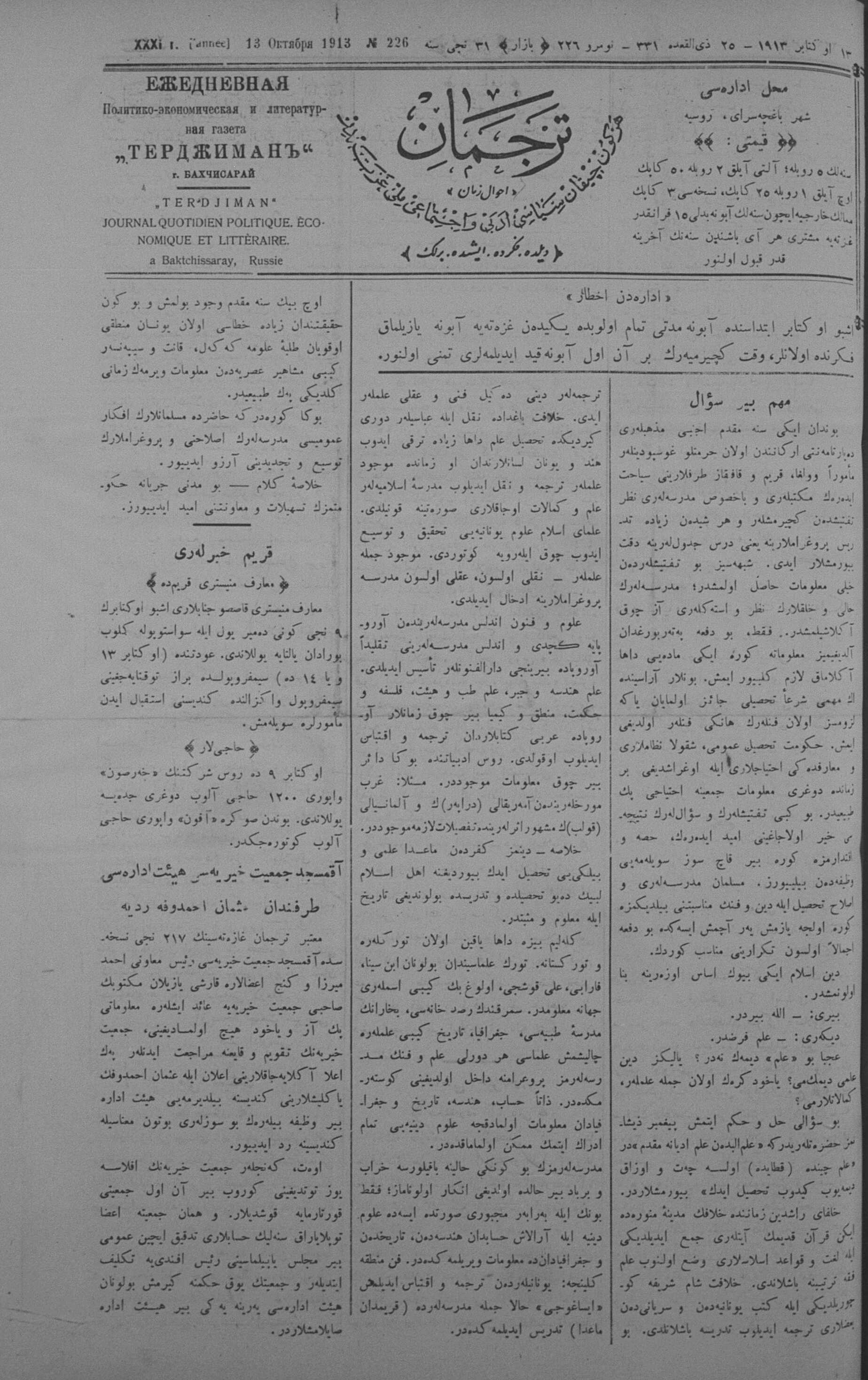 Turkish-Russian newspaper published in Crimea by İsmail Gaspıralı.