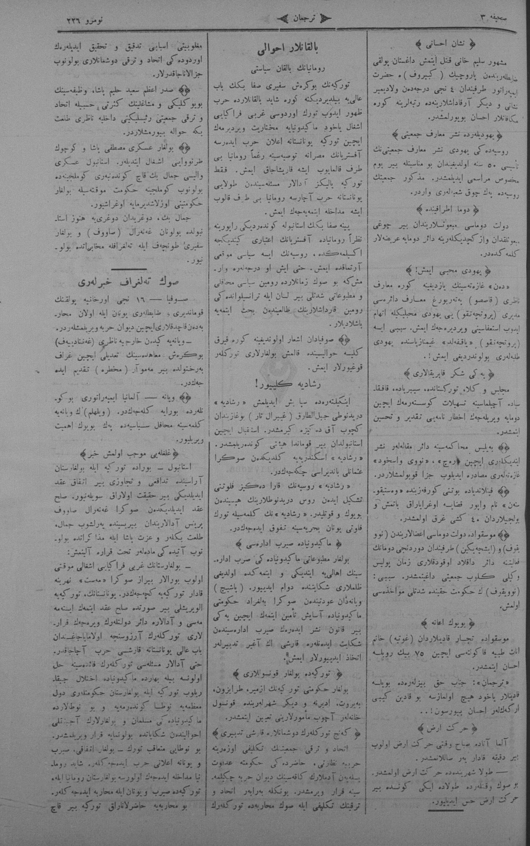The name of the newspaper changed to Tercüman-ı Ahval-i Zaman in 1905. In 1909, it started to be published under its first name, Tercüman.