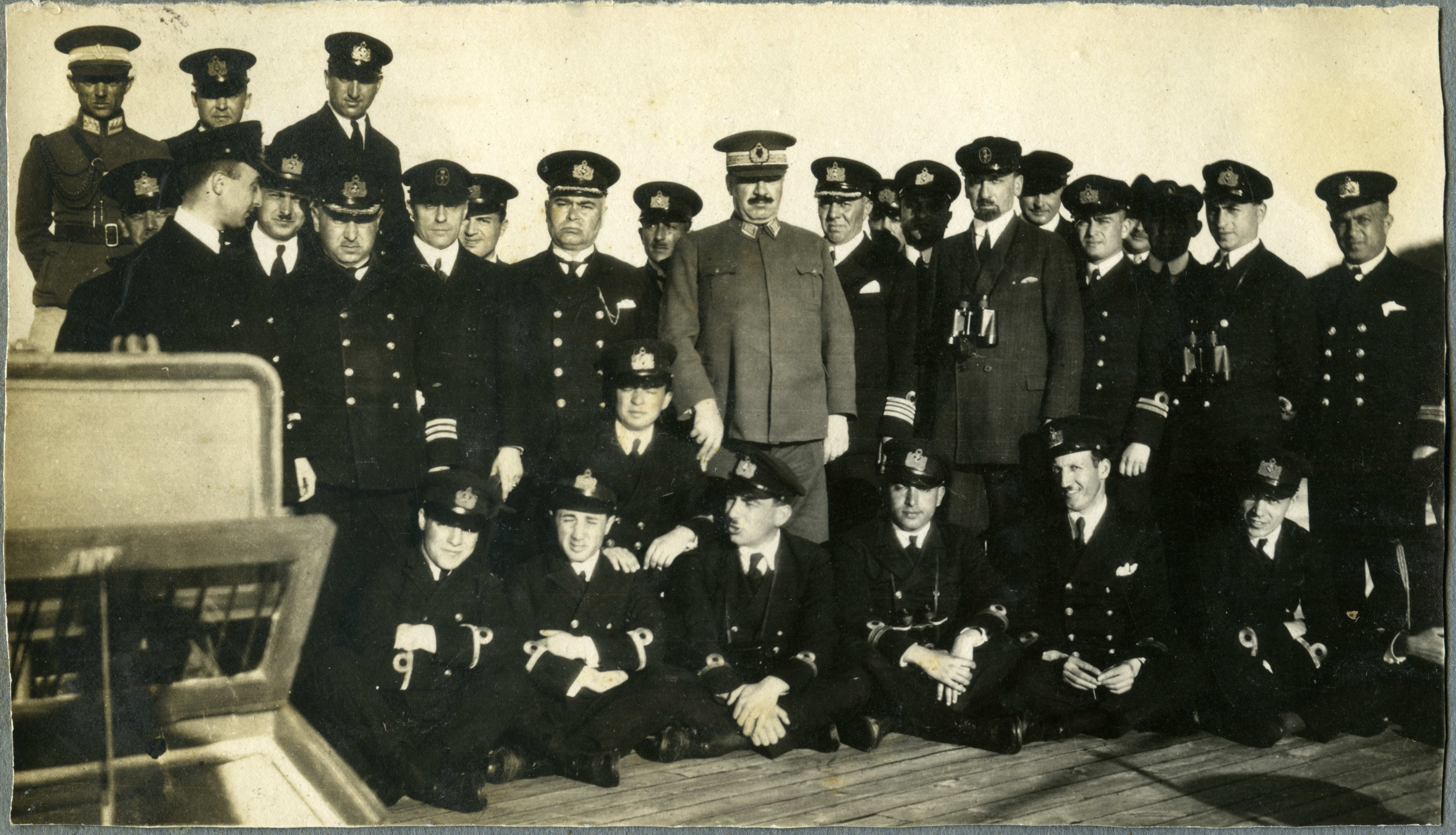 Türk donanma gemilerinin birinde bahriye subay ve askerkleri gemi güvertesinde iken Mareşal Fevzi Çakmak ile beraber çektirdikleri hatıra fotoğrafı