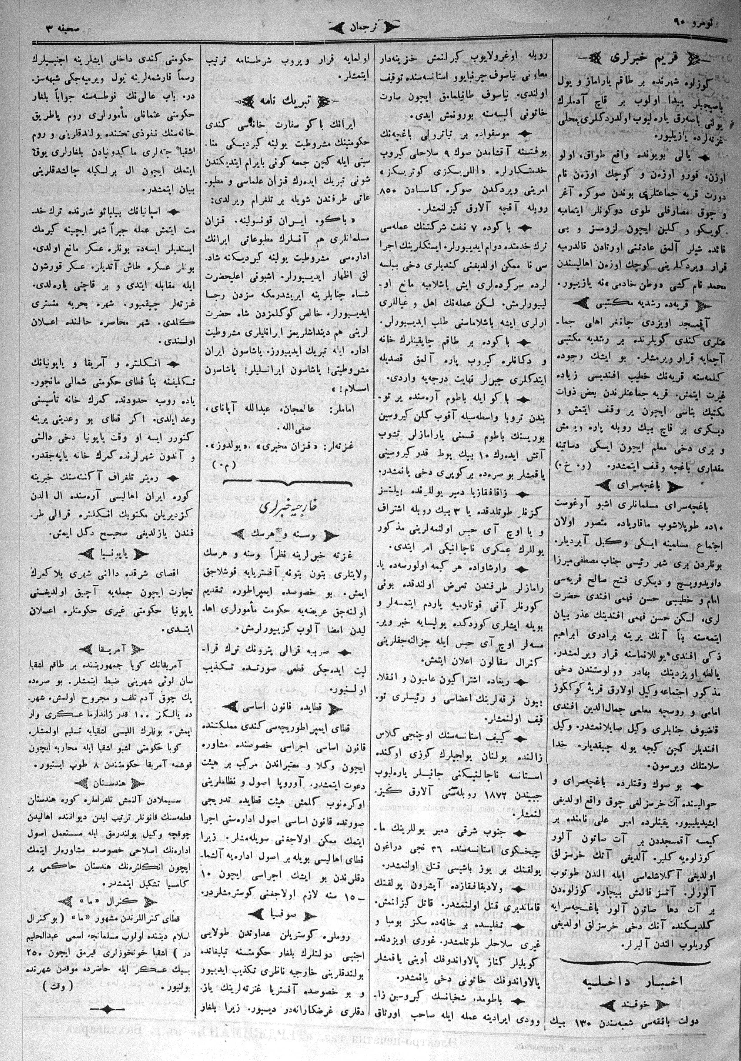 The name of the newspaper changed to Tercüman-ı Ahval-i Zaman in 1905. In 1909, it started to be published under its first name, Tercüman.