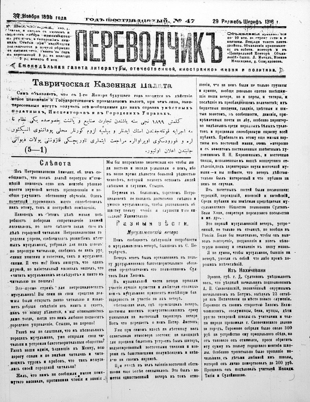Tercüman, 30 November 1898 Year 16 No 47