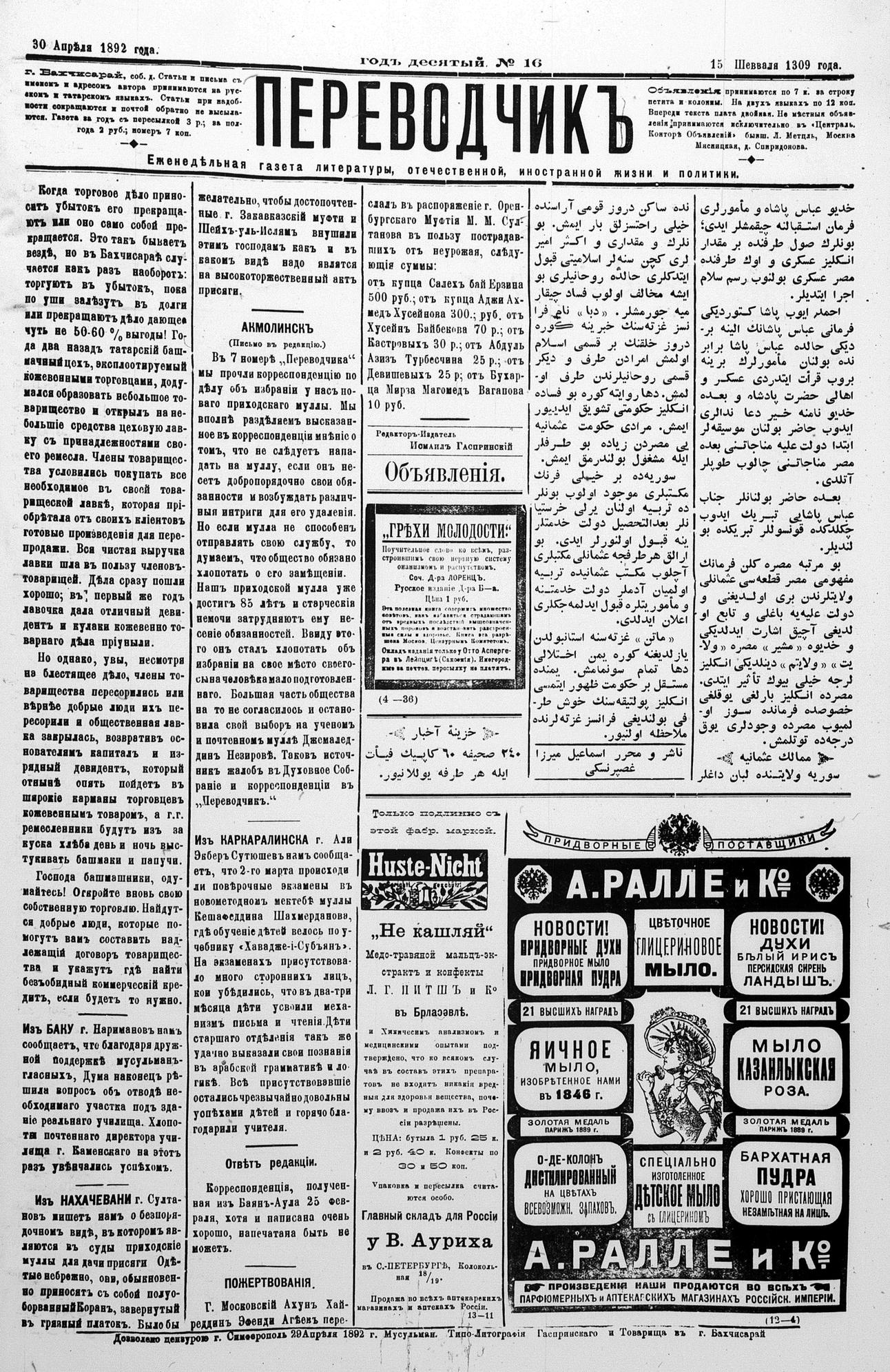 Tercüman, 30 April 1892 Year 10 No 16